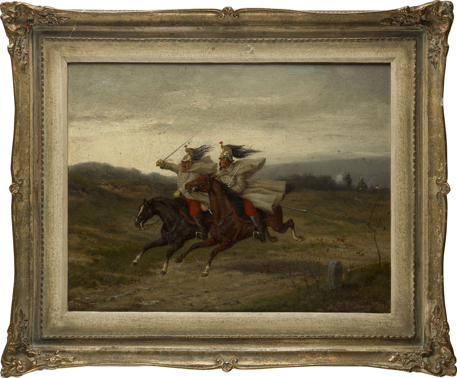 KARL GILLISSEN 1842 Aachen - ca. 1885 Dusseldorf THE ATTACK Oil on wood. 30 x 38 cm (F. 40.5 x 49 cm). Signed lower right. Punct. retouching. Framed.