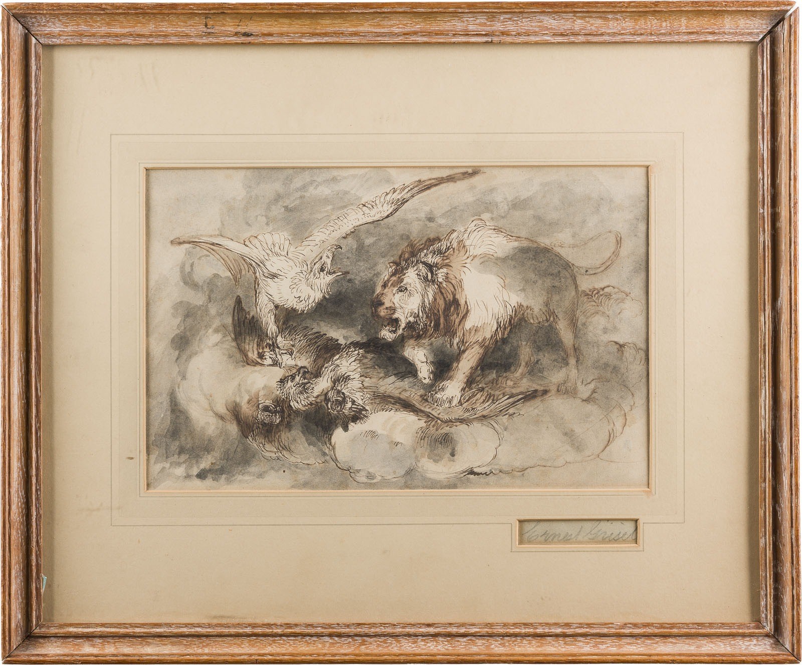 Ernest Henry Griset 1844 Boulogne-sur-Mer - 1907 London "THE FALL OF THE HOUSE OF HABSBURG" Pen and watercolour on paper, laid down on paper. Sheet 18.5 x 30.5 cm. Verso: inscribed lower area. Browning. Framed under glass and mounted in a mat.