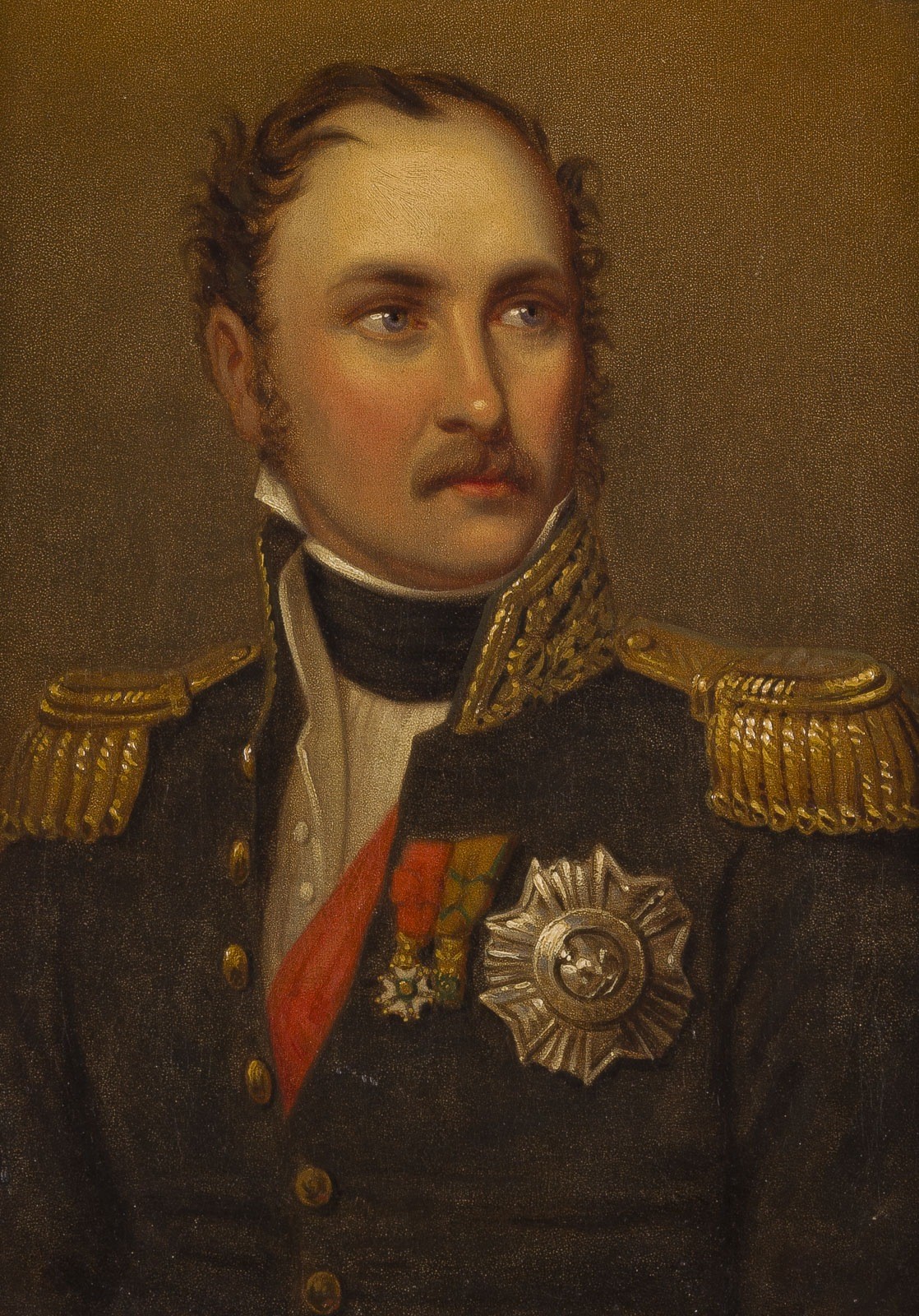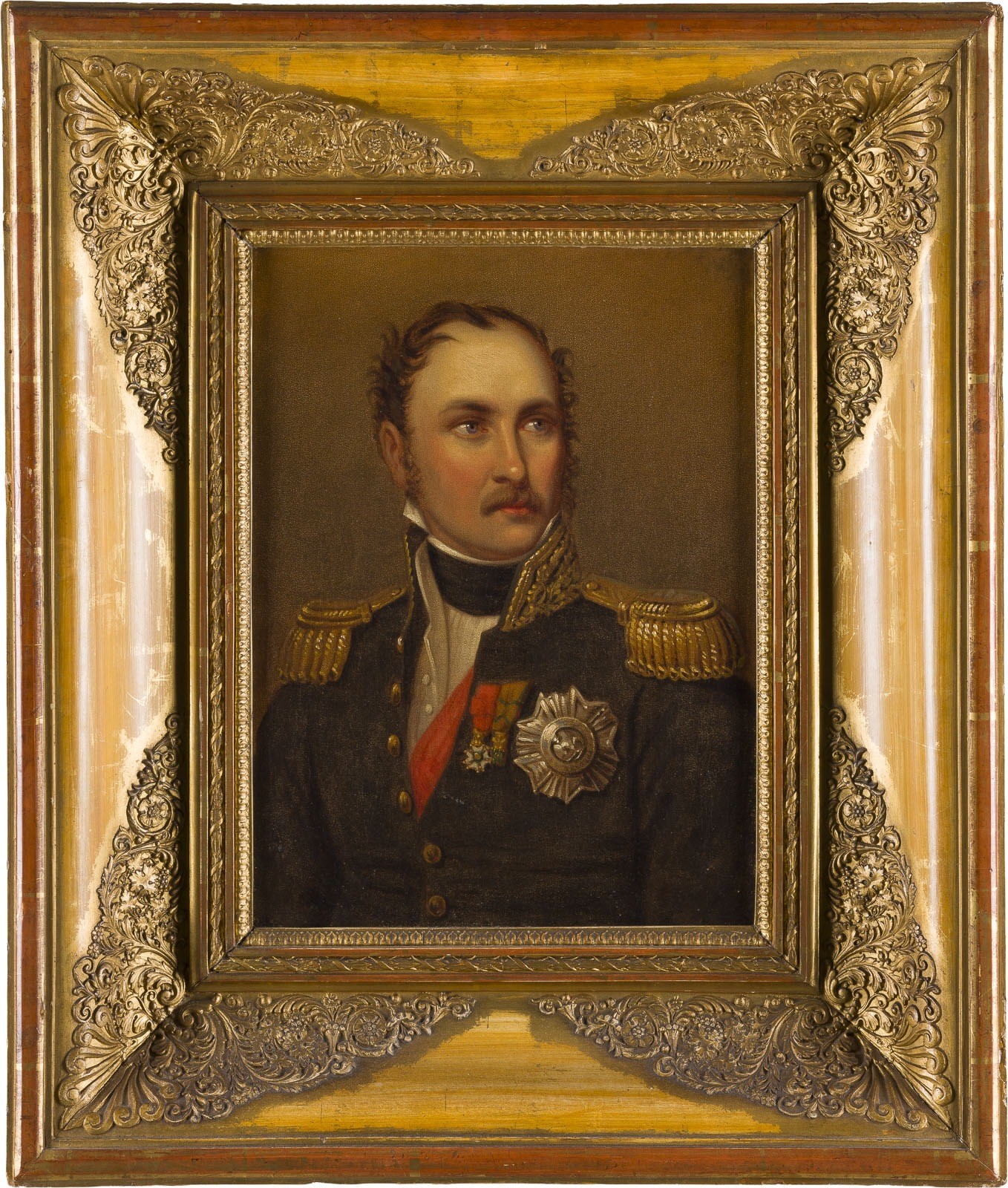 JOSEF KARL STIELER (CIRCLE) 1781 Mainz - 1858 Munich EUGÈNE DE BEAUHARNAIS, LATER DUKE OF LEUCHTENBERG, VICE-ROY OF ITALY, STEPSOON OF NAPOLEON I, SON-IN-LAW OF MAXIMILIAN I OF BAVARIA Oil on canvas. 32 × 23 cm (f. 50 × 42 cm). Original frame.