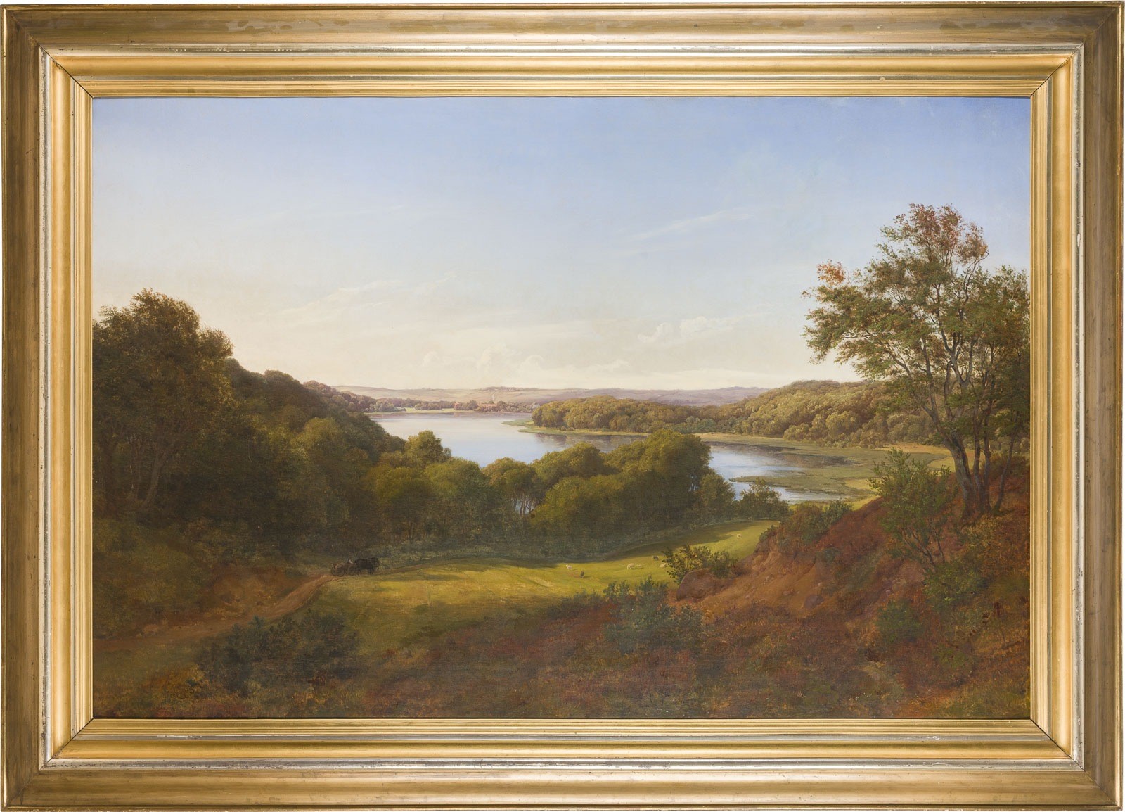 AUGUST WILHELM BOESEN 1812 Vigerslev - 1875 Bologna LANDSCAPE NEAR LUNDBYE, COPENHAGEN, 1852 Oil on canvas. 106 x 158 cm (f. 134 x 186 cm). Signed, dated, and indistinctly inscribed lower right. Framed. Provenance: Private collection, Dusseldorf.