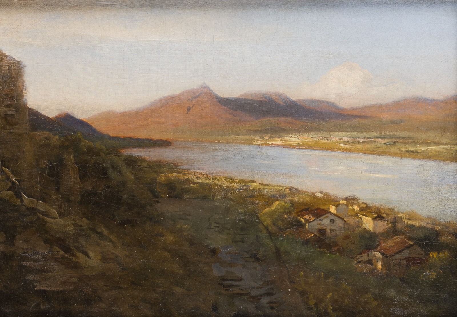 ALBERT FLAMM (ATTRIBUTED) 1823 Cologne - 1906 Dusseldorf OIL STUDY. ITALIAN RIVER LANDSCAPE Oil on canvas. 23 x 33 cm (F. 31 x 40 cm). Minimal retouching. Frame.