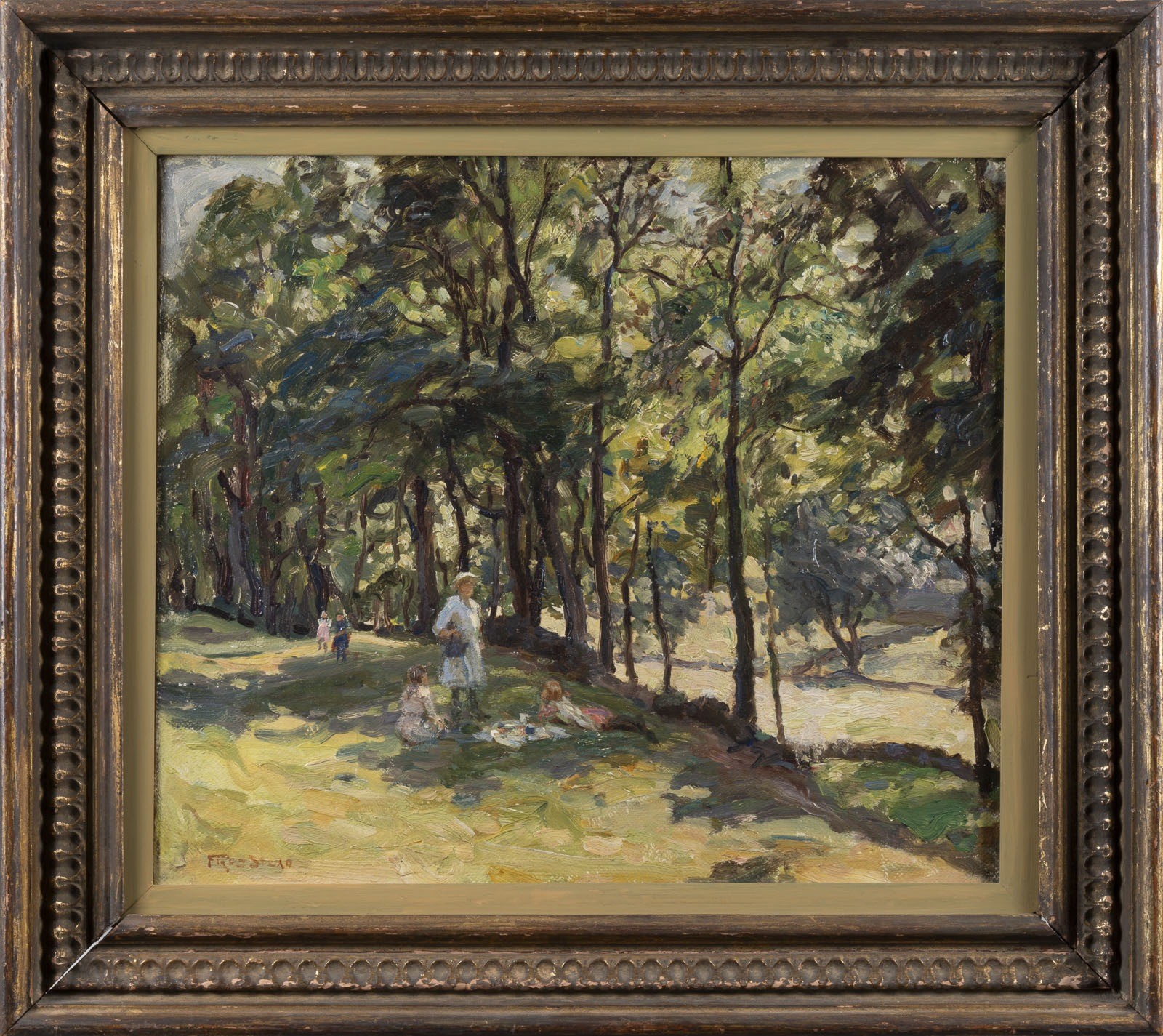FREDERIK STEAD 1863 Shipley - 1940 PICNIC, 1910 Oil on canvas. 36 × 41 cm (f. 49.5 × 55 cm). Signed and dated lower left. Framed.
