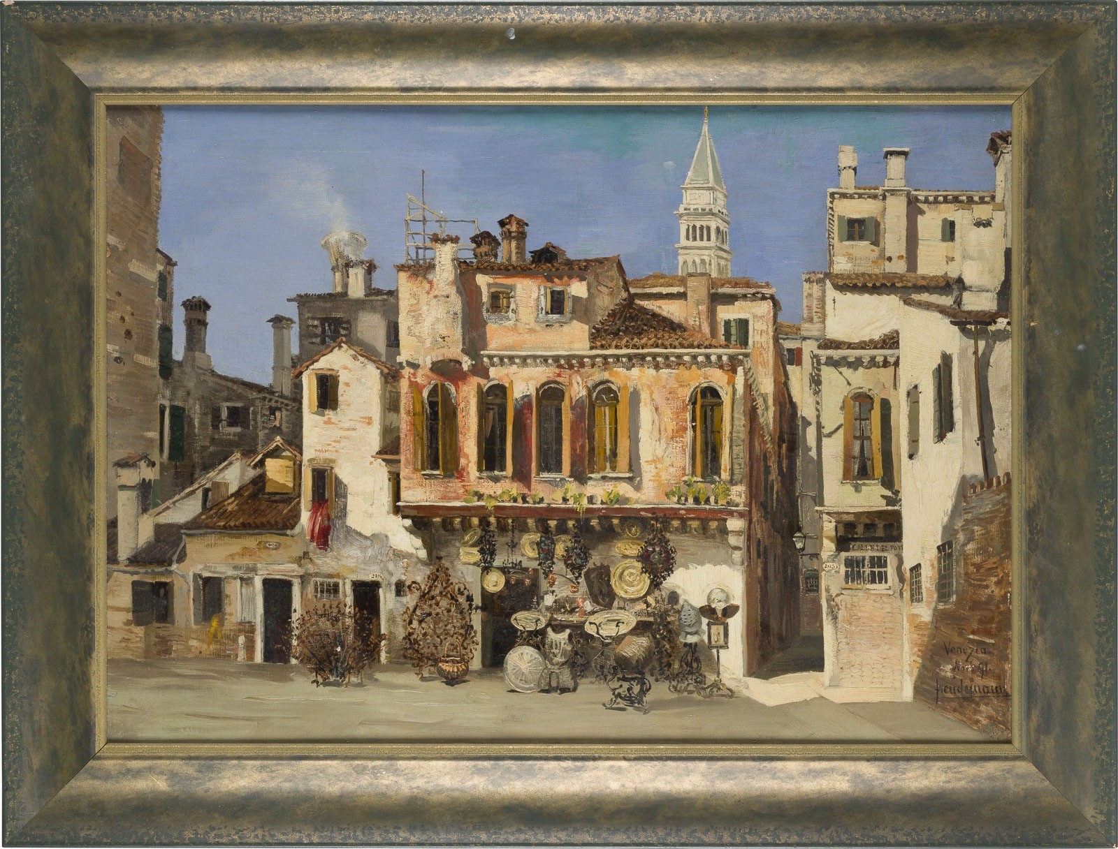 VICTOR FREUDEMANN 1857 Berlin - 1922 VENICE, 1891 Oil on canvas. 48 x 67 cm (f. 61 x 81 cm). Signed lower right. Partial retouching. Framed.