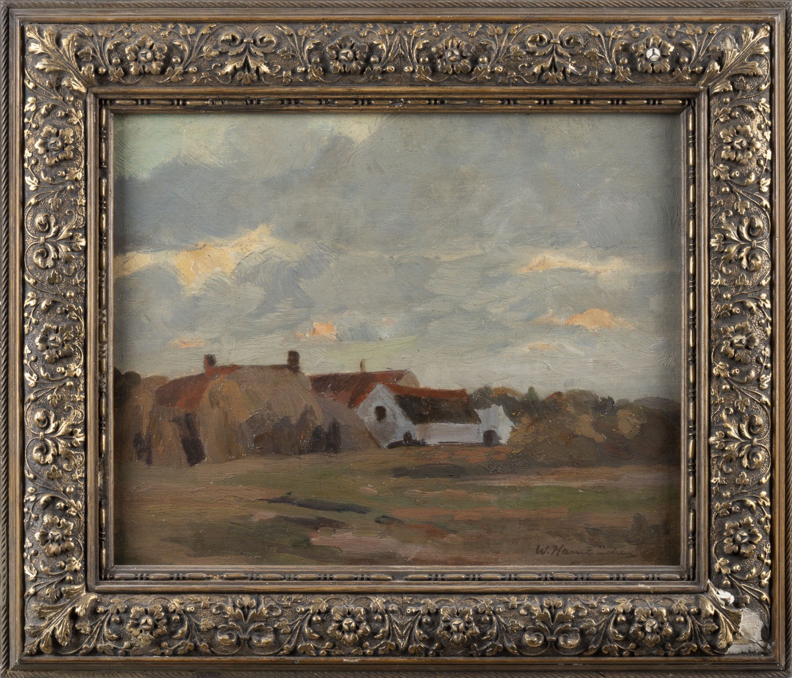 WILHELM HAMBÜCHEN 1869 Düsseldorf - 1939 Düsseldorf TWO LANDSCAPES Oil on canvas and oil on cardboard. 30.5 × 41 cm (f. 36.5 × 46 cm) and 26.5 × 33 cm (f. 39 × 45.5 cm). Each signed. Each framed.