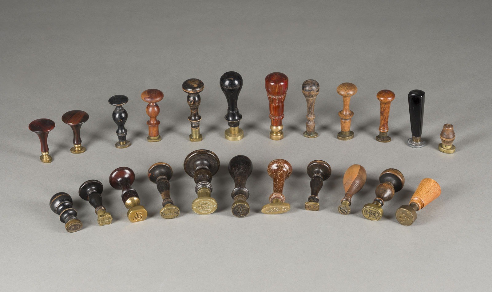 COLLECTION OF 24 SEALS Various origins and periods Various woods and metals. Max. length 10.5 cm, min. length 4 cm. Various monograms. Part. damaged.