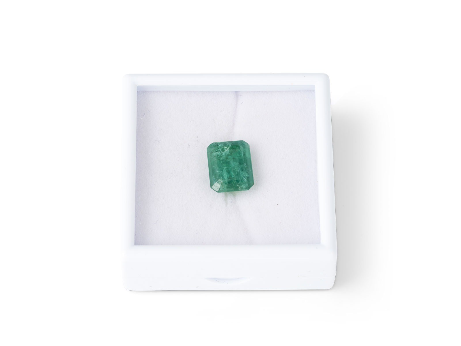 Maße: ca. 13,13 x 10,19 x 6,45 mm. Ges.-Gew.: ca. 6.67 ct.. Loser Smaragd von 6.67 ct. Mäßig Reinheitsverbessert (handelslüblich). Eine Ecke ist