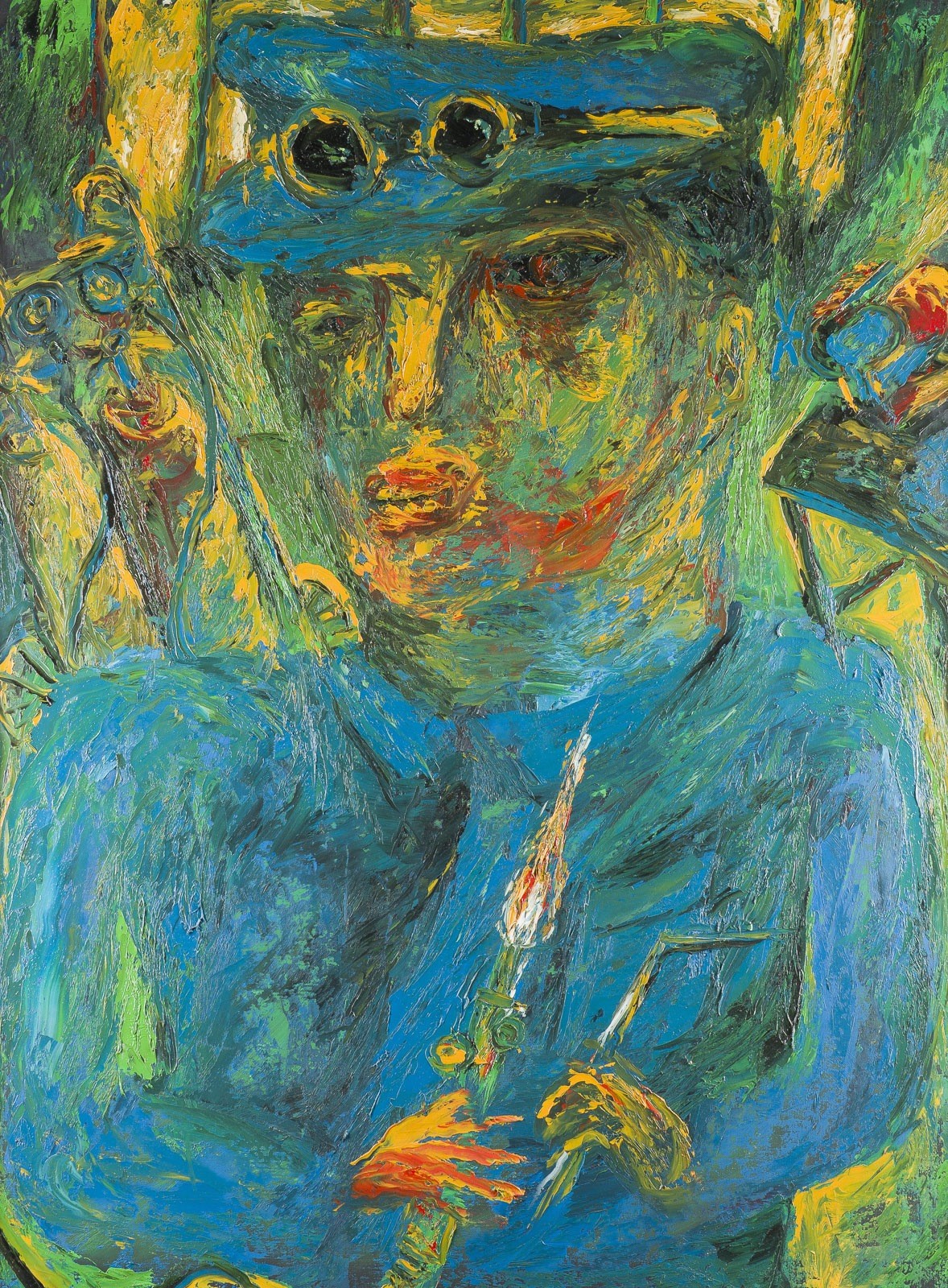 PIERRE PRENERON 1953 Frankreich 'LE SOUDEUR' (1987) Oil on canvas. Frame dimensions 112.5 x 88.5 cm. Canvas 102 x 78.5 cm. Signed and dated on the verso 'P. PRENERON 1987' as well as titled and inscribed 'No 8' on the backside of the frame. Framed. Provenance: Private collection in the Lower Rhine region.