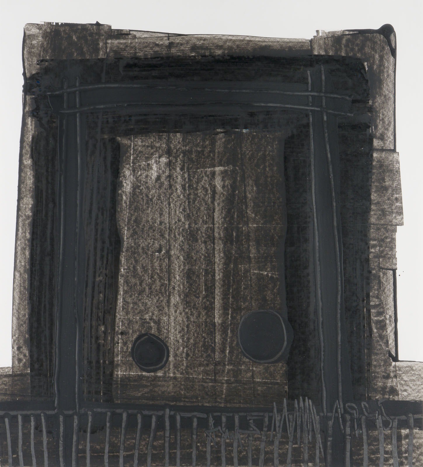 ANSGAR NIERHOFF 1941 Meschede - 2010 Cologne UNTITLED (1995) Mixed media with forged iron coating and graphite on paper. Frame dimensions 78.5 x 72.5 cm. Sheet dimensions 56 x 50 cm. Signed and dated at lower right. Mounted on white background and framed behind glass (unopened). Provenance: Private collection North-Rhine Westphalia.