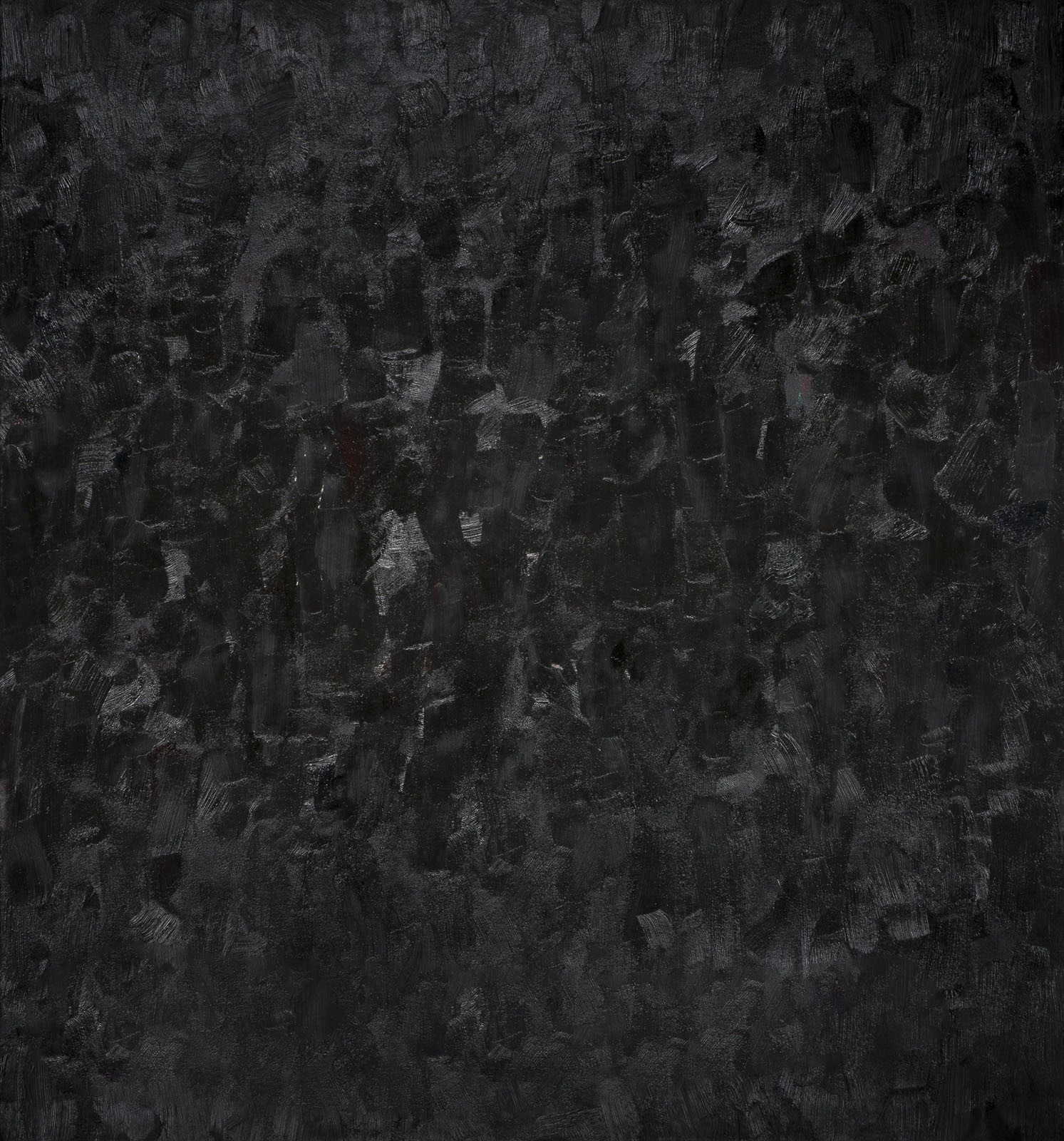 PETER TOLLENS 1954 Kleve - lives and works in Cologne UNTITLED (BLACK) Oil on canvas. 102 x 95 cm. Canvas with an elongated pressure mark at the bottom edge. Unframed. Provenance: Private collection in the Lower Rhine region.