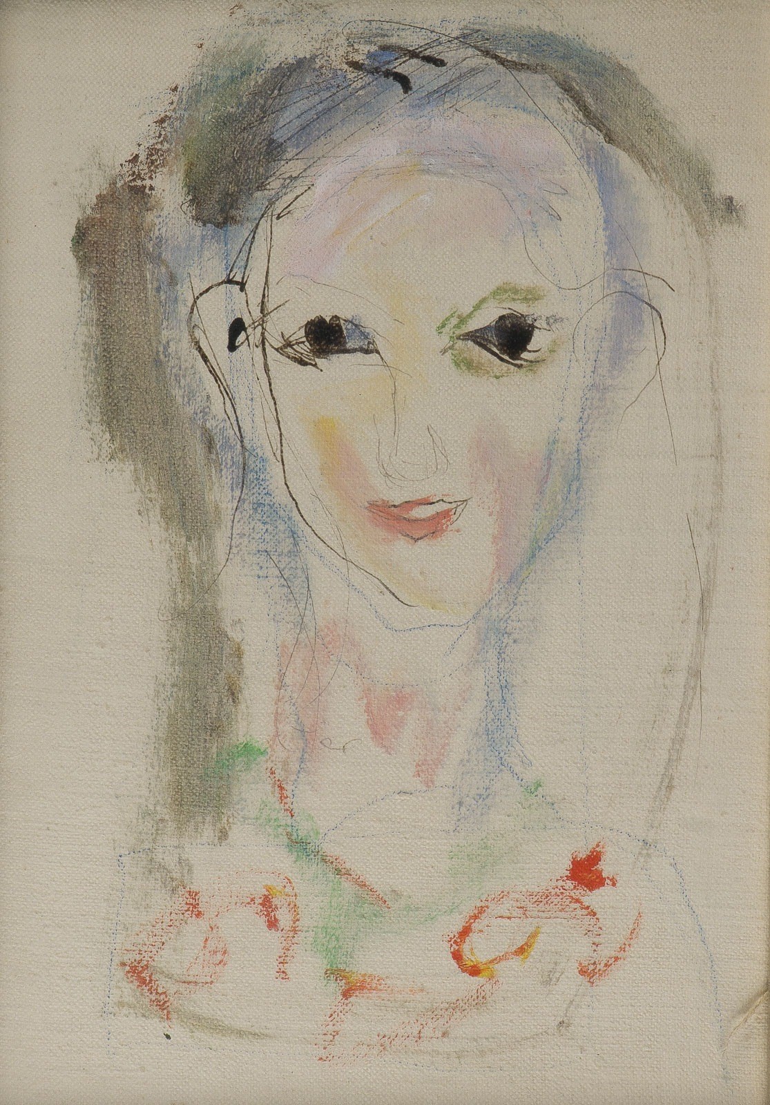 ERNESTO TRECCANI 1920 Milano - 2009 ibidem PORTRAIT Mixed media with ink, pencil and oil on canvas. Frame size 58 x 47.2 cm. Canvas 30 x 19.5 cm. Signed on the stretcher on the verso upper right 'TRECCANI'. Framed behind glass (unopened). Provenance: Private collection Lower Rhine region.