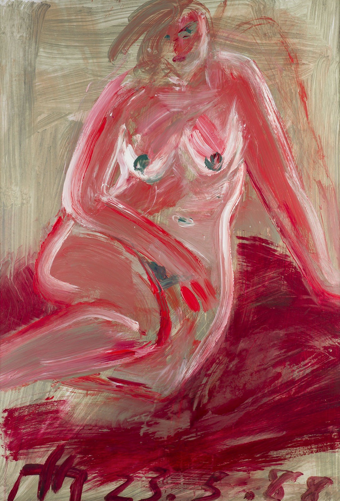 RUDOLF CALONDER 1939 Glion, Switzerland - 2017 Leipzig RACHEL (1988) Mixed media on panel. F 107,5 x 77,5 cm, panel 100 x 70 cm. With artist's signet lower left and dated '23.5.(19)88'. Verso: Signed on the reverse, with artist's address, titled and inscribed. Part. minimally bumped. Frame. Provenance: Private collection, Lower Rhine.
