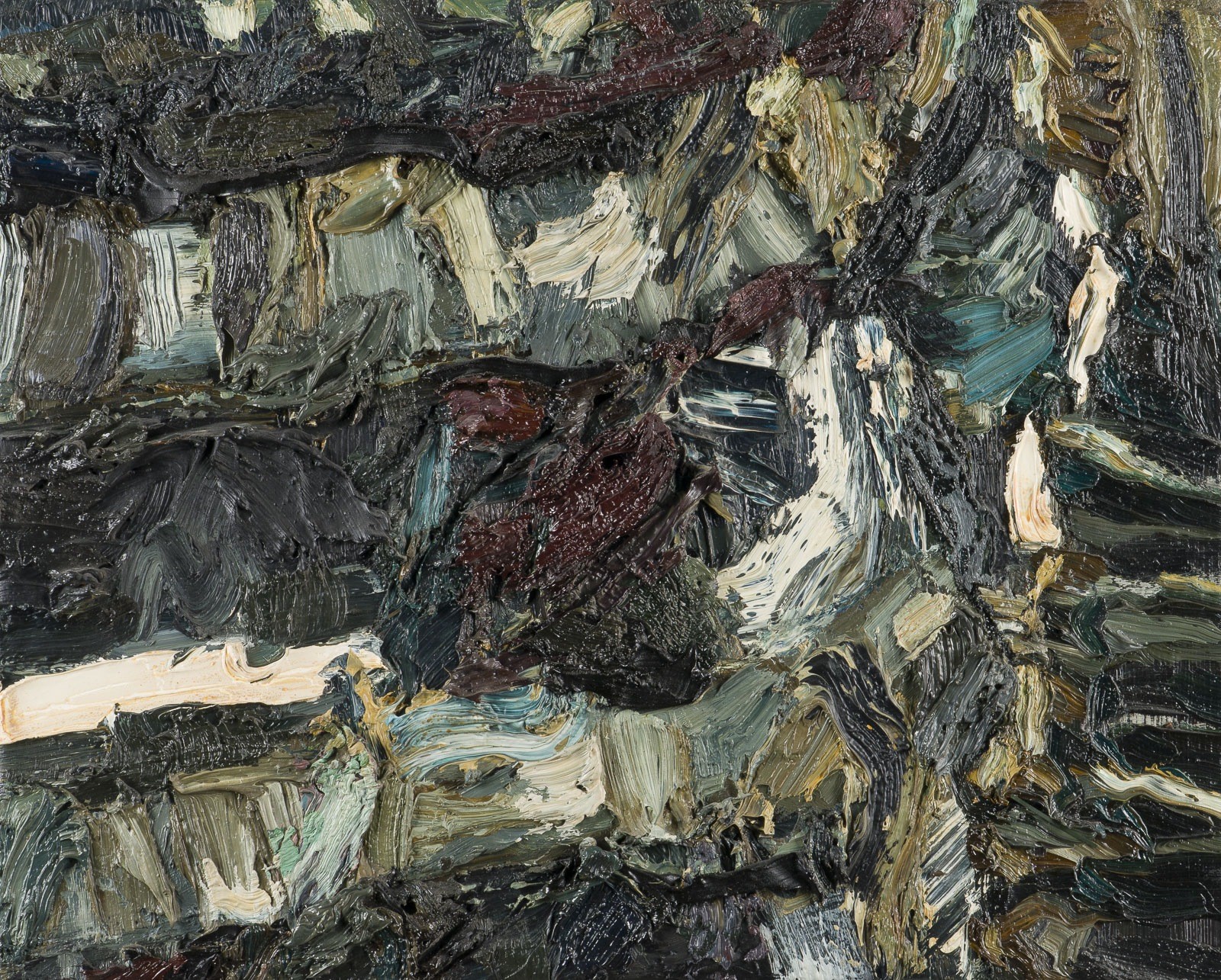 MICHAEL TOENGES 1952 Paffenhofen/Ilm - lives and works in cologne 'SPEICHERSEE' (1985-1988) Oil on canvas. 40 x 50 cm. Signed and dated 'Michael Toenges 1985-1988' as well as inscribed 'Nr. 144' and titled on the verso. Unframed. Provenance: Private collection in the Lower Rhine region.