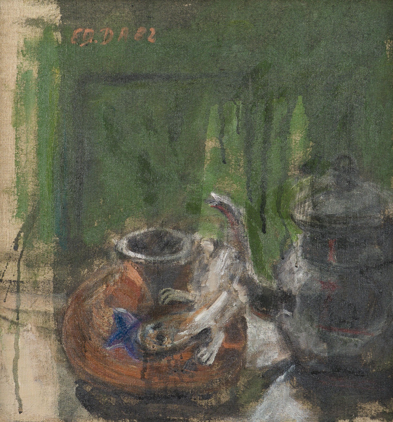 MODERN ARTIST 'ED.DA' active 2nd half of the 20th century STILL LIVE Oil on canvas. F 46,5 x 47 cm, 40 x 40 cm. Signed upper left 'ED.DA' and dated '(19)82'. Frame.