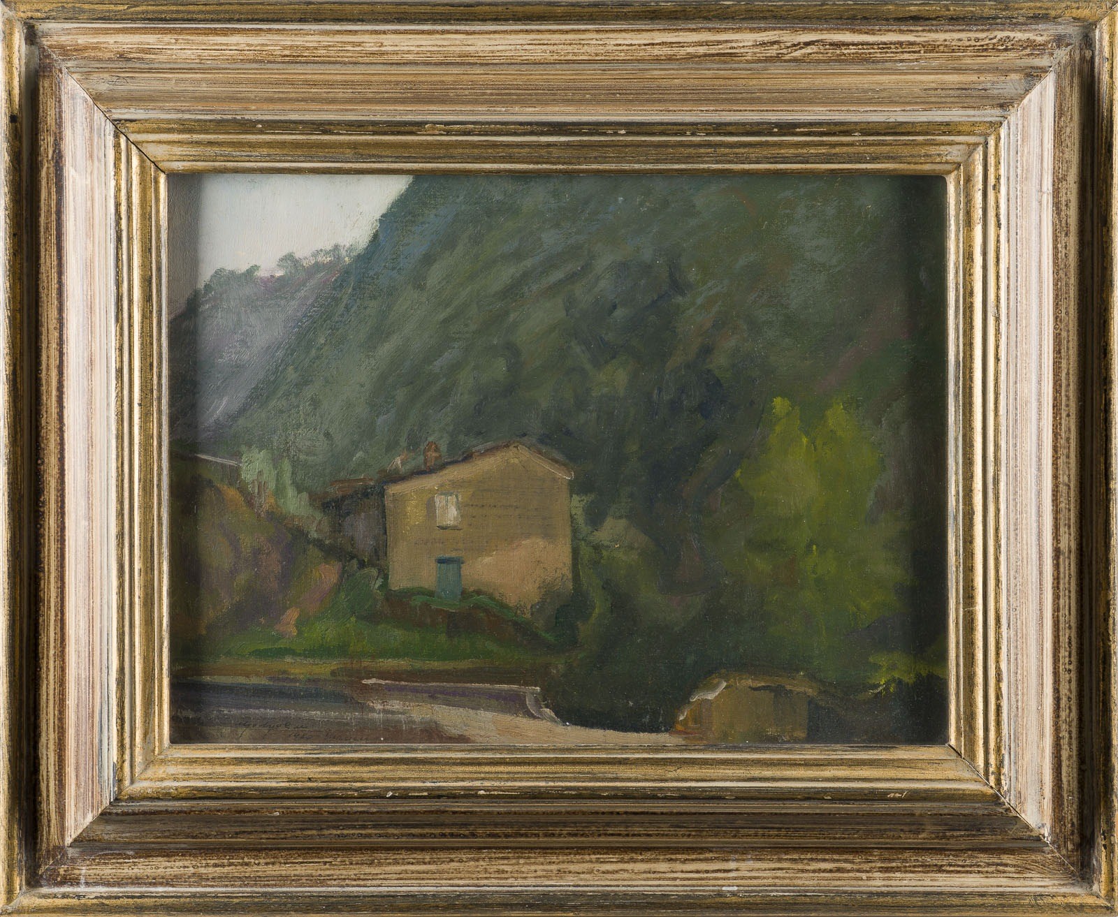 UGO UGOLINI Italy 1917 - 1999 'VERSILIA' (1980) Oil on canvas on hardboard. Frame size 46.7 x 57 cm. 29.6 x 39.5 cm. Signed, dated and located resp. titled lower left as well as signed, titled and inscribed on the verso. Framed behind glass (unopened). Provenance: Private collection in the Lower Rhine region.