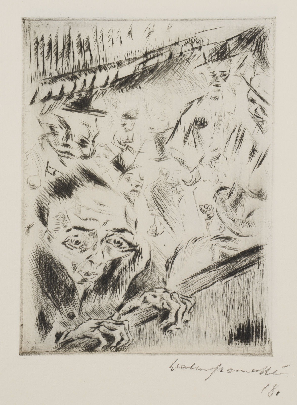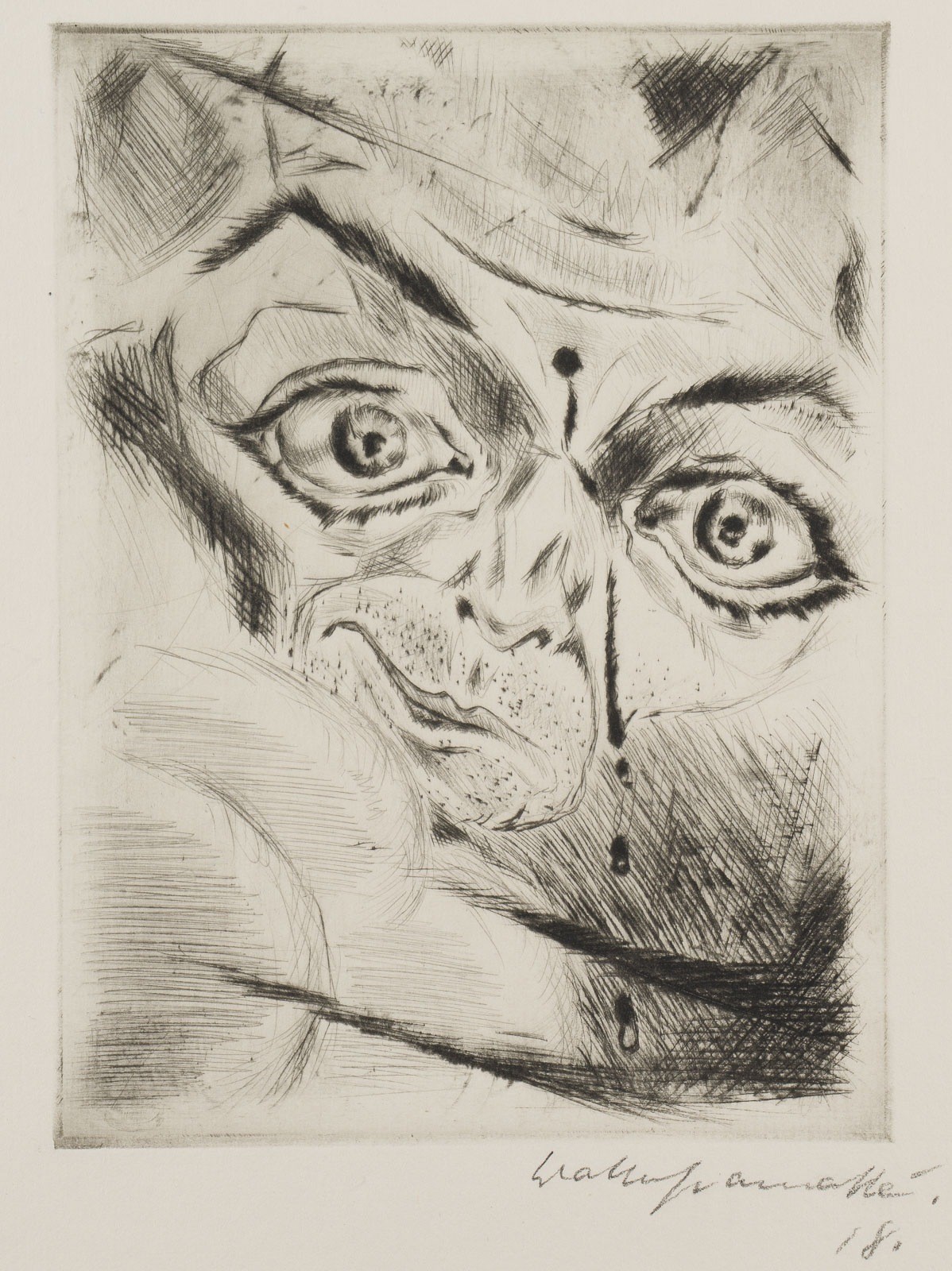 WALTER GRAMATTE 1897 Berlin - 1929 Hamburg 4 SHEET FROM 'DER REBELL' (1918) Drypoint on JWZ, with watermark. Various print sizes, sheet size ca. 40 x 25 cm. Stamped signature and date at bottom right of each. Verso: adhesive residue on reverse. Part. with min. handling marks.