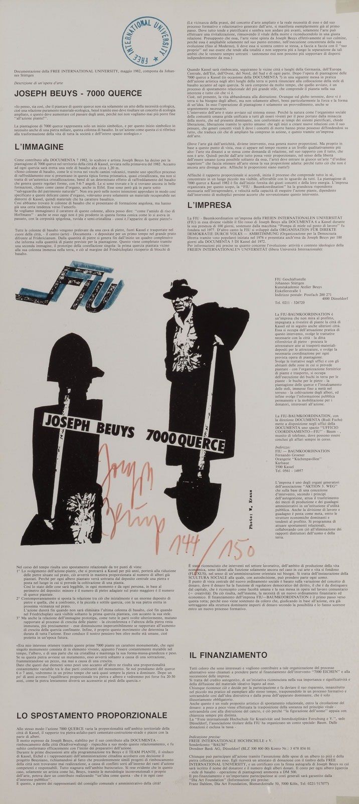 JOSEPH BEUYS 1921 Krefeld - 1986 Düsseldorf '7000 QUERCE (EICHEN)' (1984) Farboffset auf leichtem Karton. Sheet size 39,5 x 31,5 cm (f. 80 x 43 x 2,5 cm). Mittig handsigniert und nummeriert '144/155'. Verso: Part. mit Klebestreifen fixiert. Hsg. Edizioni Lucrezia De Domizio, Pescara. Hinter Glas gerahmt, beidseitig einsehbar (ungeöffnet). Literatur: Schellmann 487. Provenienz: Privatsammlung Düsseldorf.