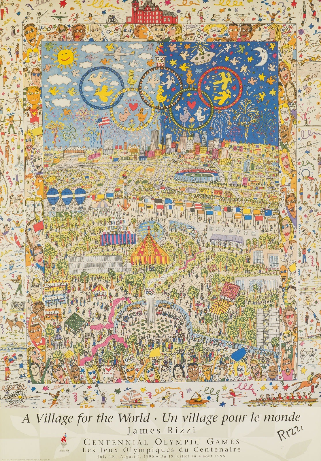 JAMES RIZZI 1950 New York - 2011 ibid. 'A VILLAGE FOR THE WORLD' (1996) Offset on paper. F 125 x 94,5 cm. Sheet size 99,7 x 69,4 cm. Signed lower right Unten rechts mit Faserstift sign. 'Rizzi'. Verso: with certificate. Slightly browned. Mounted and framed behind glass (unopened).