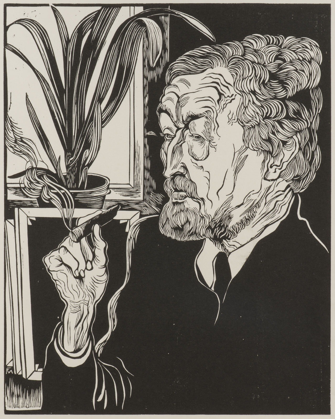 CONRAD FELIXMÜLLER 1897 Dresden - 1977 Berlin 'CHRISTIAN ROHLFS' (1927) Woodcut on laid paper. Sheet size 67.4 x 51.5 cm. Print size 49.2 x 38.9 cm. Monogrammed in print lower left 'FM'. Verso inscribed in pencil by an unknown hand. With handling marks and crease marks in the margins.