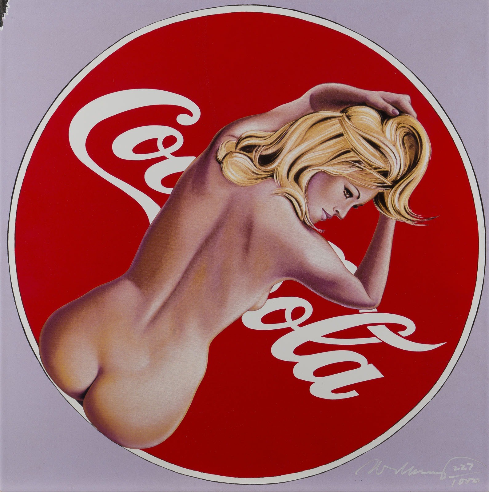 MEL RAMOS 1935 Sacramento, California - 2018 Oakland, California 'COCA COLA - THE PAUSE THAT REFRESHES' Colour serigraph and colour offset print on enamelled metal. 40 x 40 x 2.5 cm. Signed and with copy no. '227/1000' at lower right corner. Upper left corner with losses of enamel and paint.