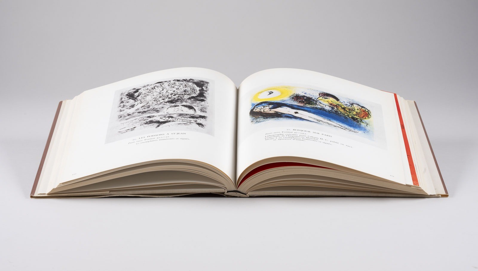 MARC CHAGALL, 'LITHOGRAPHE I' (1960) Book, with 12 lithographs and illustrations by Chagall, with original dust jacket and transparent film cover, text in French. 32,5 x 25 x 3 cm. Copyright André Sauret, printed by Fernand Mourlot, 1960, 220 pages. Condition commensurate with age, dust jacket and folio partly damaged at the edges. Provenance: Private collection Düsseldorf.