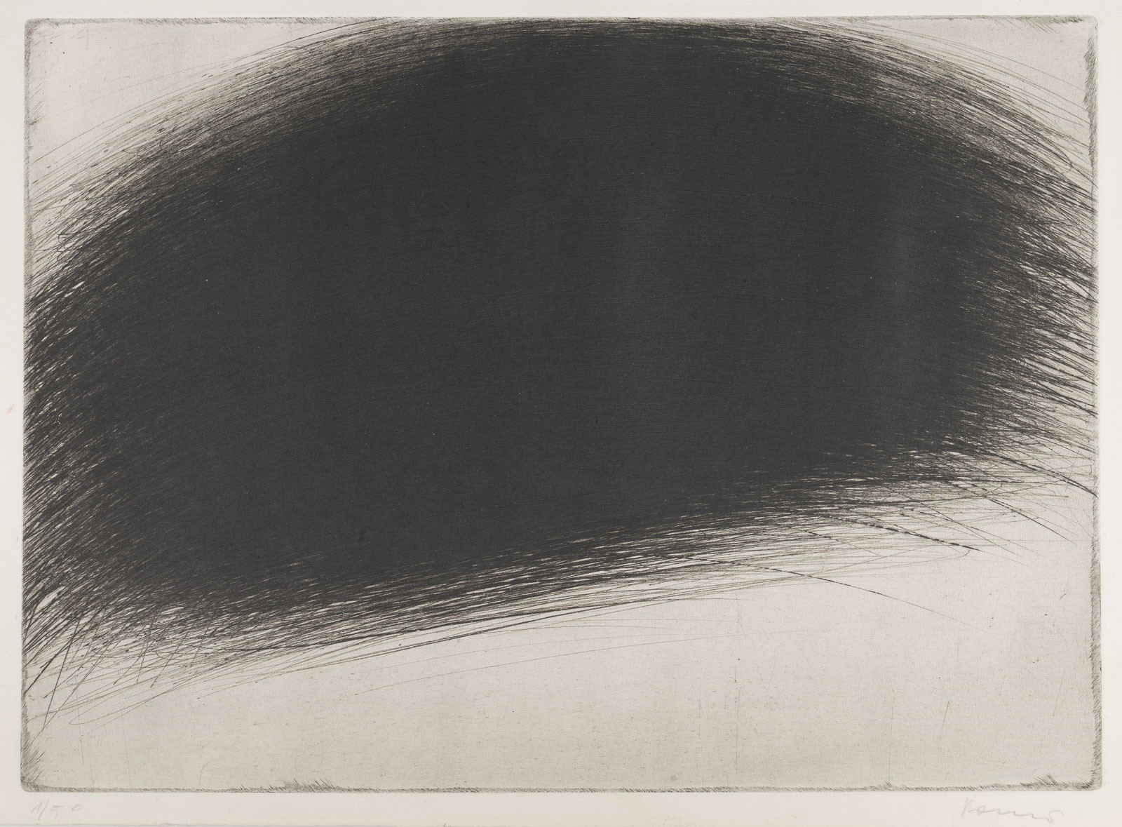 ARNULF RAINER 1929 Baden bei Wien UNTITLED Drypoint etching on wove paper. Sheet size 40,5 x 49,5 cm (probably trimmed). Print size 30 x 41,1 cm. Signed in pencil lower right 'Rainer' and num. lower left '1/50'. Slightly browned, slightly smudged, corners and edges part. bumped, part. slightly stained.