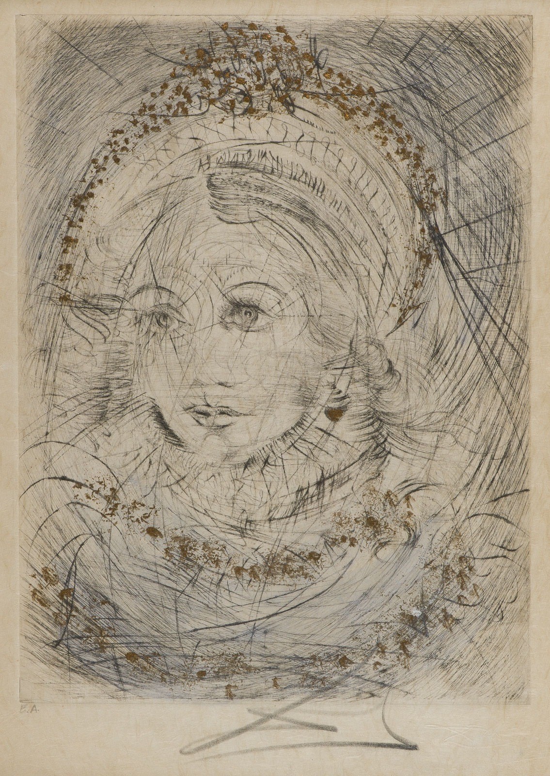 SALVADOR DALI 1904 Figueres, Girona - 1989 ibidem 'PORTRAIT DE MARGUERITE' (1968/69) from: Faust (La Nuit de Walpurgis) Coloured drypoint and roulette etching on japan paper. Frame size 60.2 x 50.2 cm. Sheet size 38.2 x 28.4 cm. Print size 31.8 x 23.9 cm. Signed in dry stamp as well as in pencil lower right 'Dalí'; inscribed lower left 'E.A.'. Slightly browned. Mounted on white background and framed behind glas (unopend). Literature: Michler/Löpsinger 298.