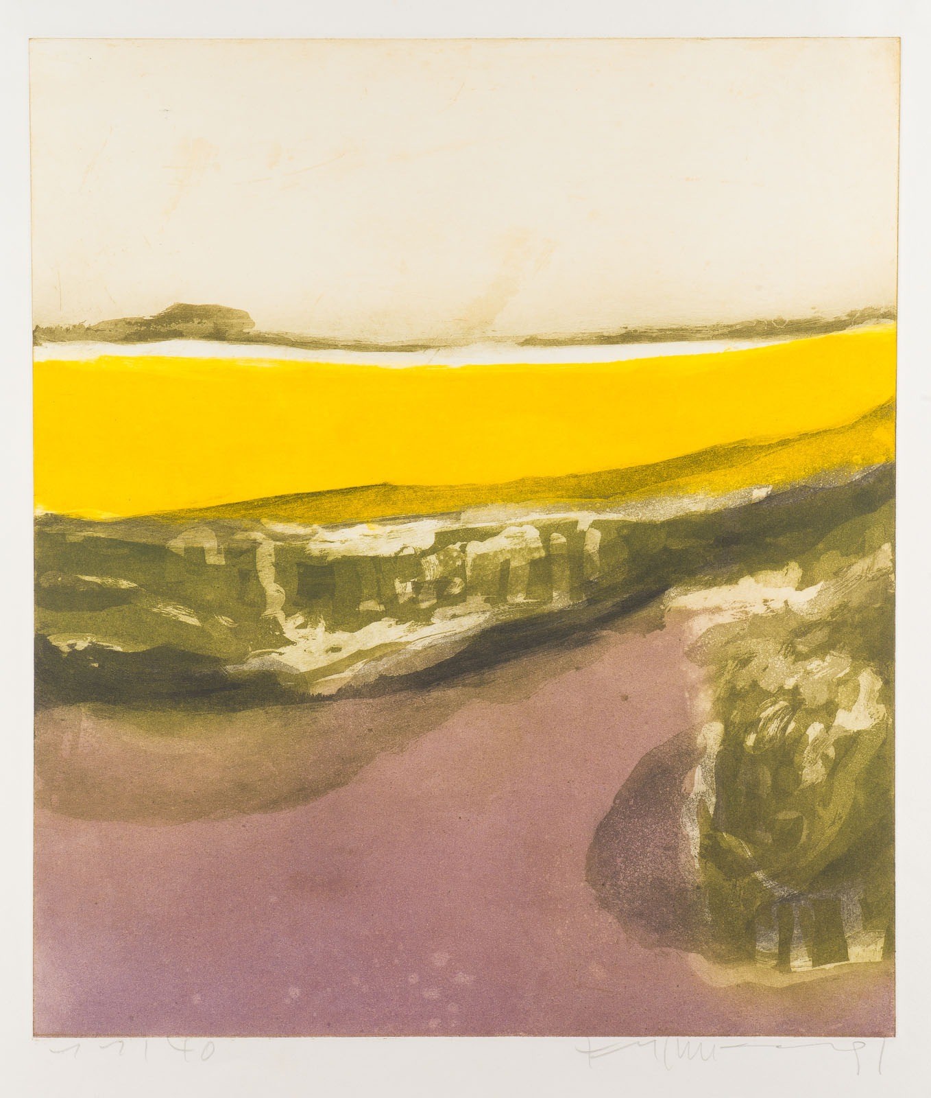 KLAUS FUSSMANN 1938 Velbert RAPSFELD NEAR DÜSTNISHY (1991) Colour etching with aquatint on wove paper. PP 68 x 59 cm. Print size 49,2 x 42,7 cm, Sheet size 58,7 x 50 cm. Signed and dated in pencil lower right, num. lower left '11/40'. Verso: Part. min. smudged. Mounted in passepartout.