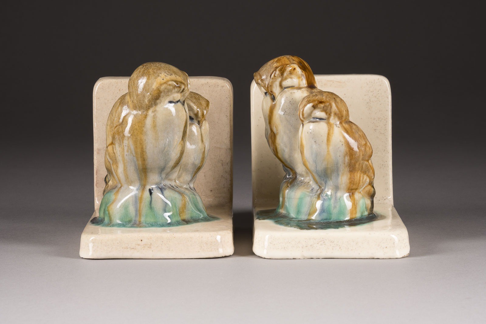 Keramik, heller Scherben, farbig glasiert. H. 14 cm, B. 10,5 cm. Min. Haarrisse.