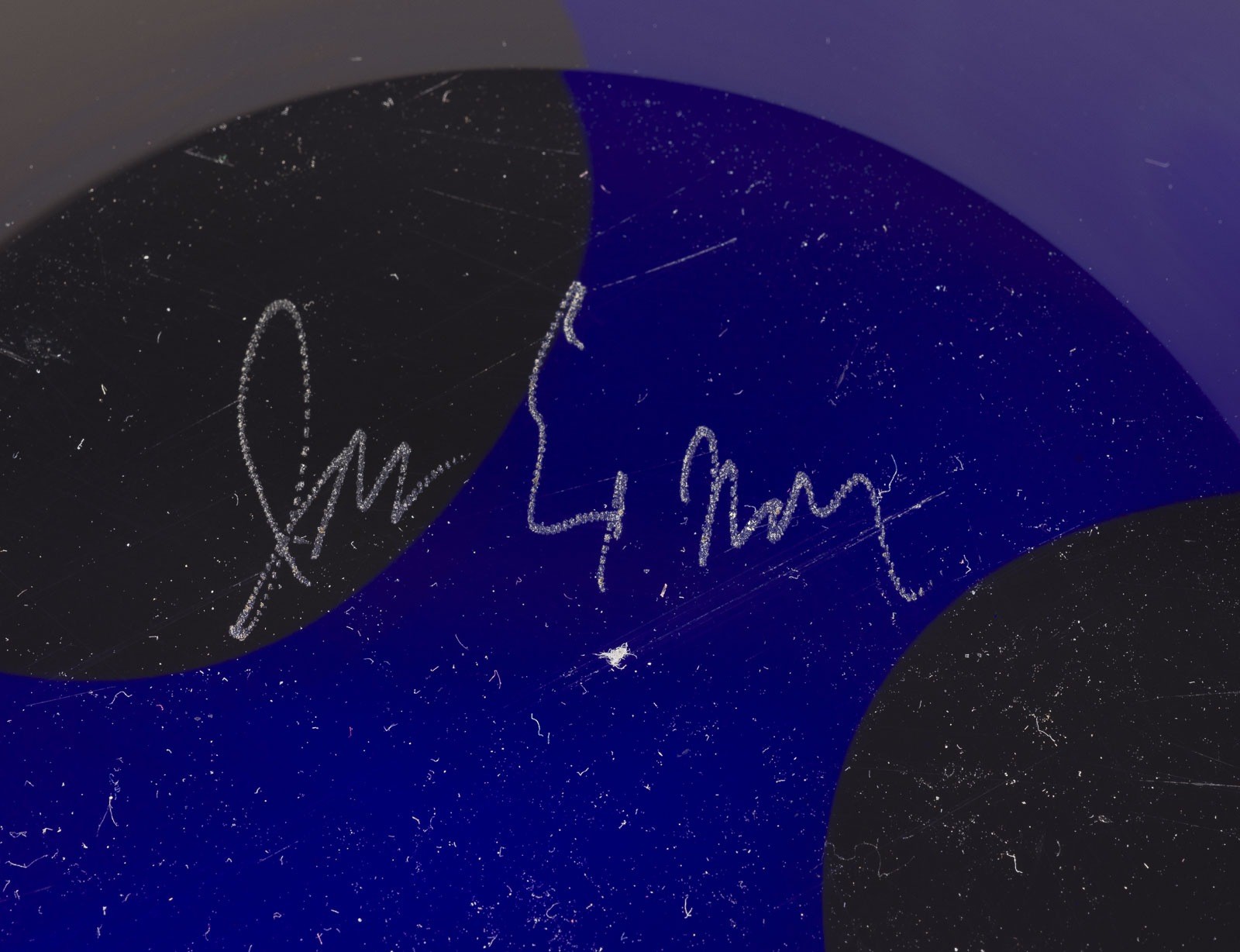 JAN EXNAR 1951 Havlickuv Brod / CSSR LARGE PLATE Czechia, Sklarna Beranek, circa 1999 Cobalt blue, orange and white glass, colourless overlay. H. 6 cm, D. 60 cm. Signed underneath 'Jan Exnar' (incised). Provenance: Private collection Westphalia.
