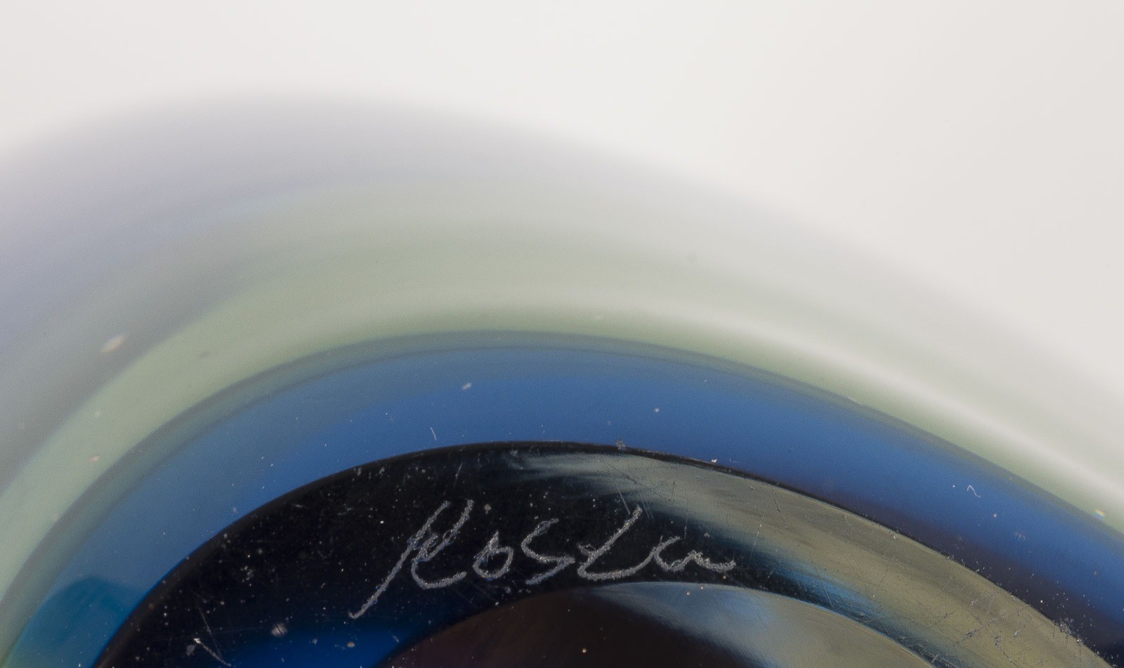VICKE LINDSTRAND & VLADIMIR MIKA (ATTR.) 1904-1983 & 1935 PAIR OF 'SOMMERSO' VASES Sweden, Kosta, model '46450' around 1970 and CSSR, likely Moser Karlovarske Sklo 1960/70 Each coloured glass w. heavily colourless overlay. H. 17,5 / 21 cm, W. 10,5 / 11 cm, D. 6 / 10 cm. Marked 'Kosta' (incised) or unmarked. Provenance: Private collection Rhineland.