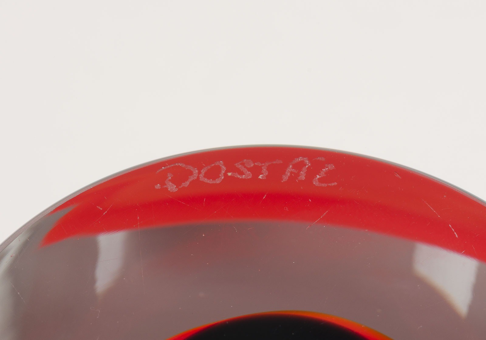 VLADIMIR DOSTAL Czechia TWO PAPERWEIGHTS '61' CZ, Beranek Sklo, circa 2004 Black glass, thick colourless overlay, enclosed red band. H. 11,5 / 9,5 cm, D. 8 / 10 cm. Marked underneath 'DOSTÁL' (incised).