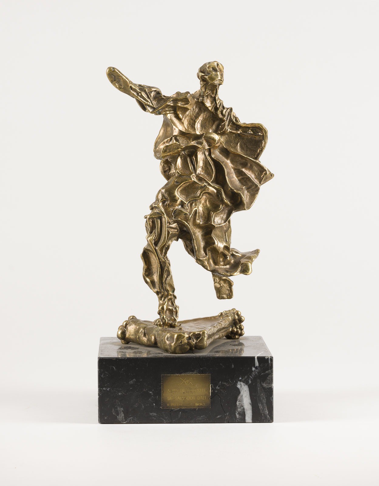 SALVADOR DALI 1904 Figueres, Girona - 1989 ibidem 'ALMA DEL QUIJOTE' Bronze, golden patinated, partially polished, on marble base. 33 x 15 x 16 cm, height of the bronze 27 cm, total weight 7.8 kg. Signed 'Dalí' and with copy no. 'A-181/300', additionally inscribed and titled on a plaque on the base. Partially slightly rubbed, base with slight damages around the edges and with cracks.