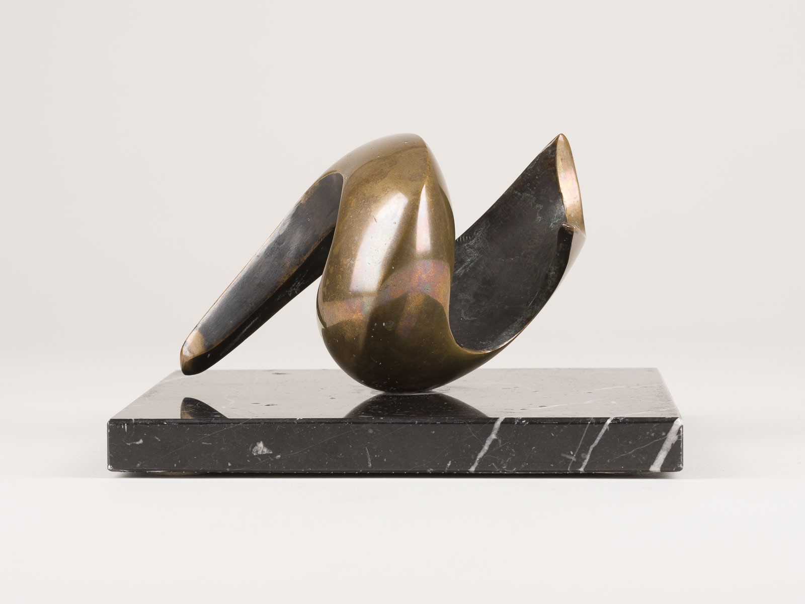 ERNEST JOACHIM 1949 'THE SILENCE OF THE SEA' Bronze, part. dark brown, part. light brown patina, on stone base. H.-Bronze 10 cm, H.-Total. 12 cm, base 19,5 x 19,5 cm, total-weight 3,9 kg. Label under the base. Min. with traces of oxidation, part. min. rubbed; base part. dam.