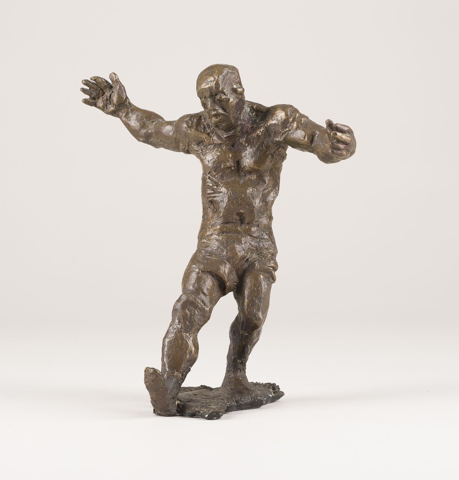 JÜRGEN WEBER 1928 Münster - 2007 Pou d'es Lleó, Ibiza FOOTBALLER Bronze, brown patinated. 22 x 21.5 x 11.8 cm, 2.85 kg. Signed at the verso 'WEBER'. Partly rubbed and with losses of patina. Provenance: Private collection Lower Saxony.