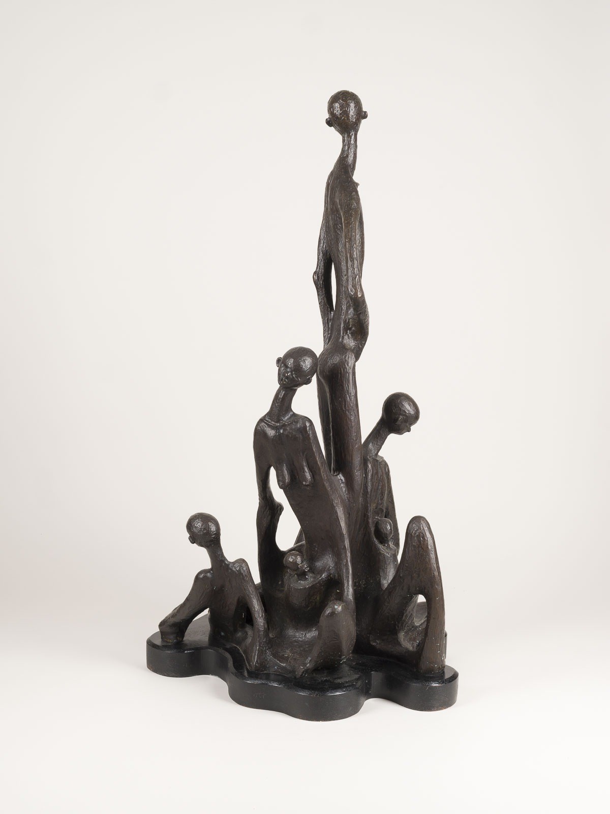 HATTAKITKOSOL SOMCHAI Bangkok, Thailand 1934 - 2000 LARGE GROUP OF FIGURES (1985) Bronze, dark brown patinated, on wood base. Total height 93 cm. Bronze 87.5 cm high, 44 cm wide, 39 cm long. Total weight 25 kg. Signed and dated 'SOMCHAI (19)85' as well as with copy no. '1/9'. Partially min. rubbed. Provenance: Private collection in the Bergisch area.