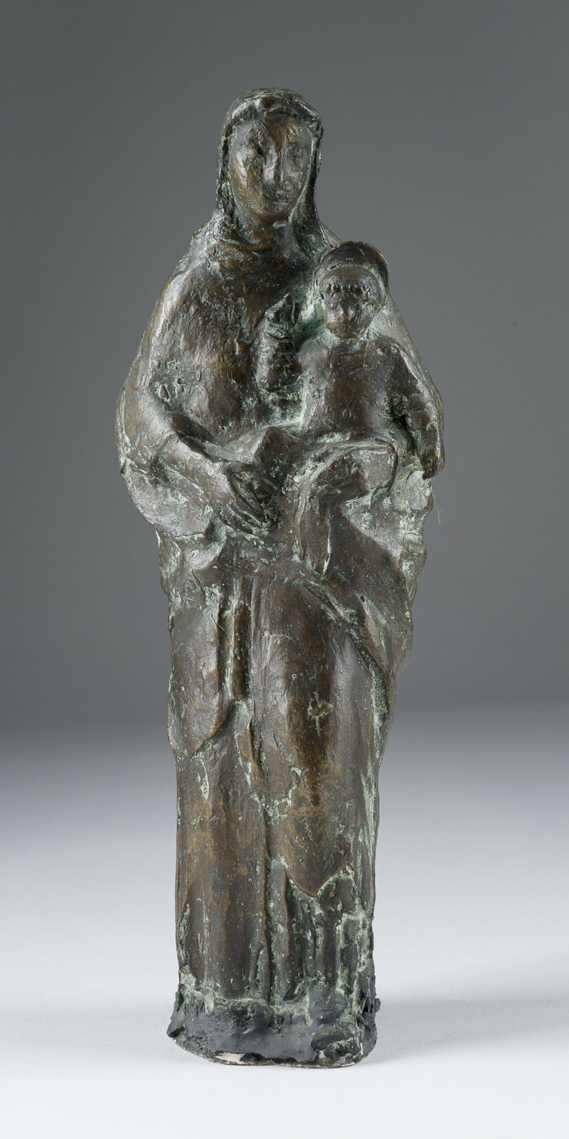 ELMAR DIETZ 1902 Jesserndorf - 1996 Munich MADONNA WITH CHILD Bronze, dark brown patina. H. 35 cm, weight 2,5 kg. Signed in the back. In the lower area with remnants of foreign material, with traces of oxidation. Provenance: Private collection Ruhr area.