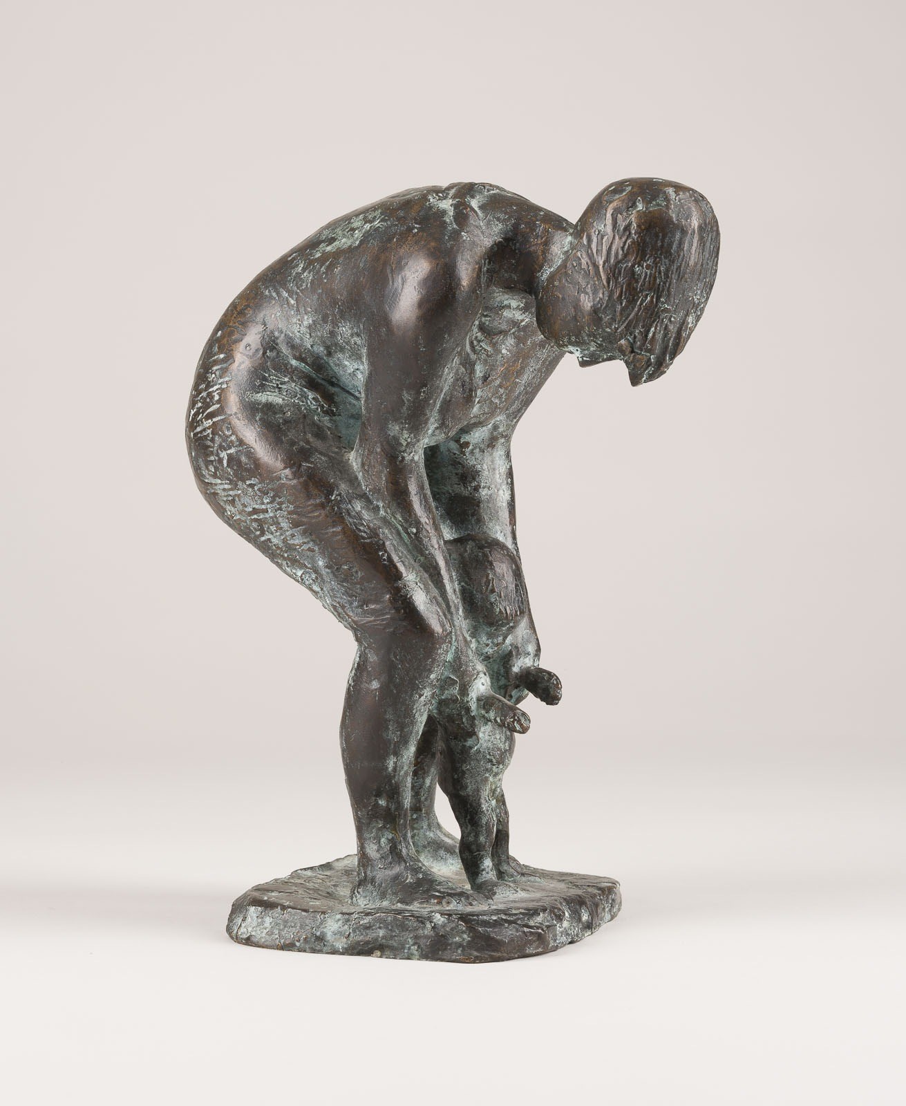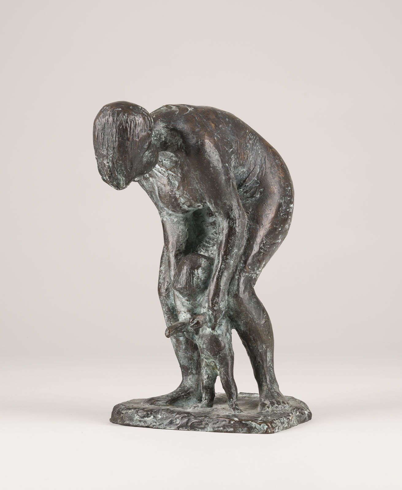ERNEMANN SANDER 1925 Leipzig - 2020 Bad Godesberg 'MUTTER MIT KIND (MOTHER AND CHILD)' (1964) Bronze with plinth, darkbrown patinated. 27 x 15.5 x 21 cm, 5.10 kg. Monogr. on the plinth 'ES', titled and inscribed on an adhesive label on the underside as well as with copy no. '3/7'. Traces of oxidation, partially rubbed.
