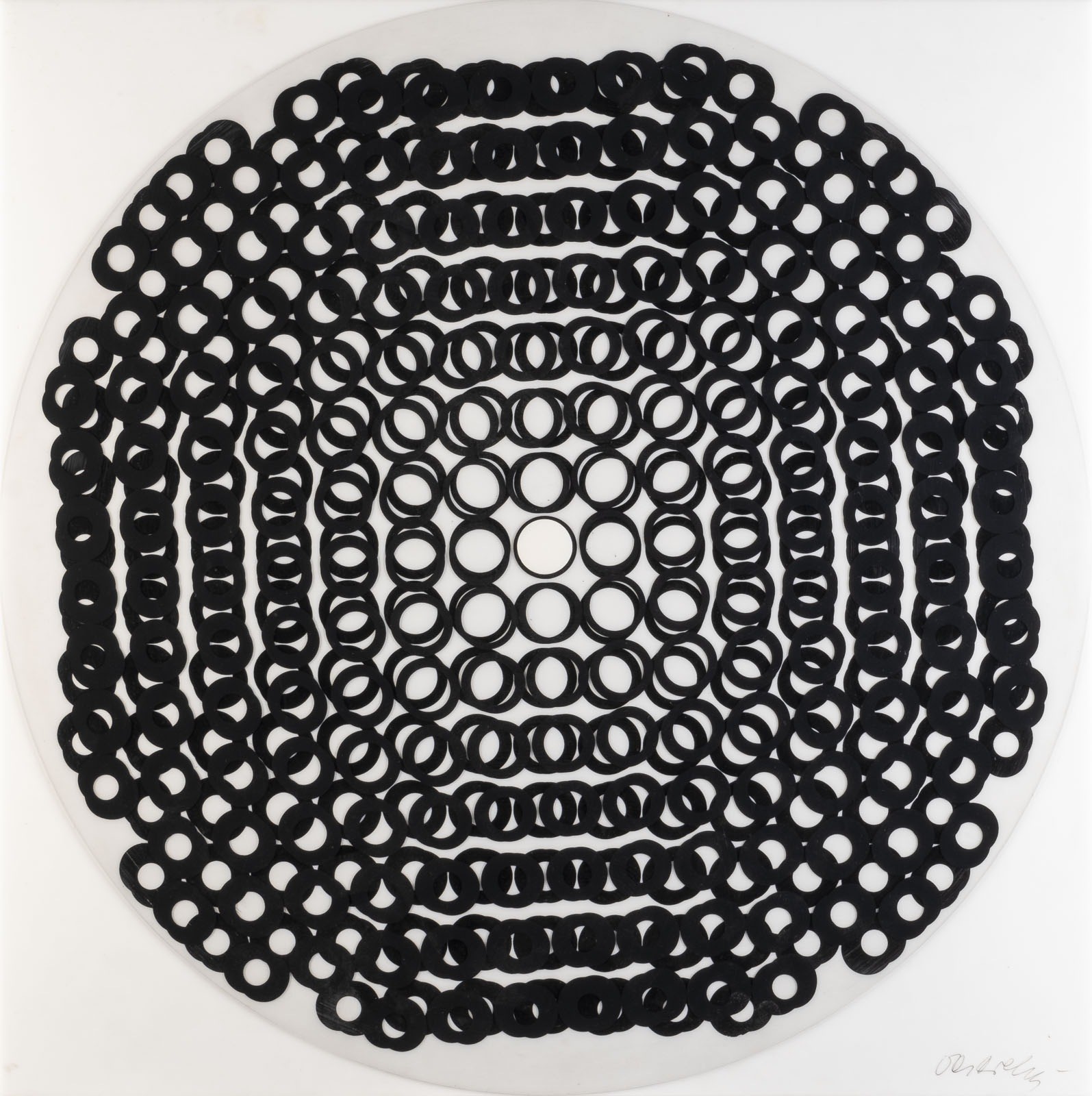VICTOR VASARELY 1906 Pécs, Hungary - 1997 Paris 'TUZ' (1970) Serigraph (acrylic) on transparent plastic disc and plexiglass. Diameter of the disc 56 cm, plexiglas 56 x 56 x 1 cm. Signed lower right 'Vasarely'.
