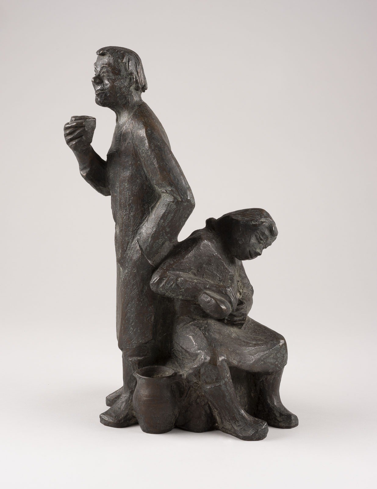 RICHARD ROTHER 1890 Biebergemünd - 1980 Fröhstockheim TWO WINE TESTERS Bronze, dark brown patinated. H. 39,5 cm, weight 5,5 kg. Unsigned. Part. with traces of oxidation.