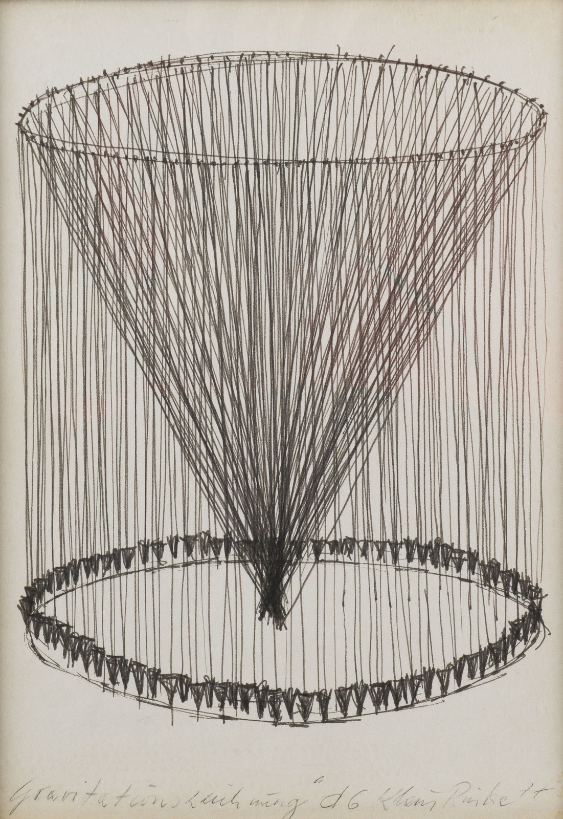 KLAUS RINKE 1939 Wattenscheidt 'GRAVITATION DRAWING' (1977) Fibre pen on paper. F 26,7 x 19,5 cm, visible size 23,5 x 17,5 cm. Signed, dated, titled and inscr. lower right 'd6'. This drawing was created for documenta 6 in Kassel in 1977. Slightly browned at the edges, part. slightly stained. Framed behind glass (unopened). Provenance: Private collection Düsseldorf.