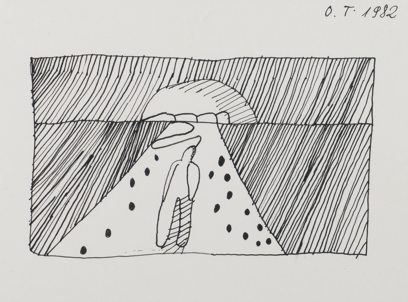 OSWALD TSCHIRTNER 1920 Perchtoldsdorf, Austria - 2007 Maria Gugging, Austria UNTITLED (1982) Pen and ink drawing in paper. 14,9 x 20,9 cm. Signed and dated upper right. Framed behind glass. Provenance: Private collection Baden-Württemberg.