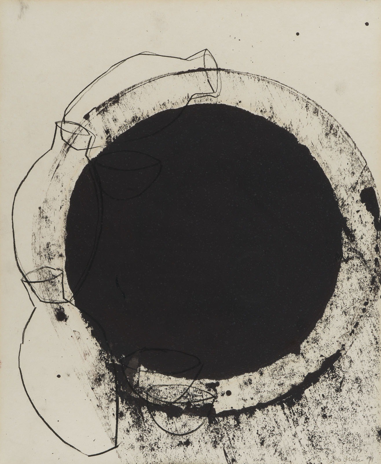 MANFRED MÜLLER 1950 Düsseldorf - lives and works in Düsseldorf/Los Angeles, USA UNTITLED (1991) Mixed media, emulsion paint and pencil on paper. R. 73 x 53 cm, 37,5 x 30,5 cm. Signed and dated in pencil lower right. Minimally browned on the edges. Mounted and framed behind glass (unopened). Provenance: Private collection Düsseldorf.