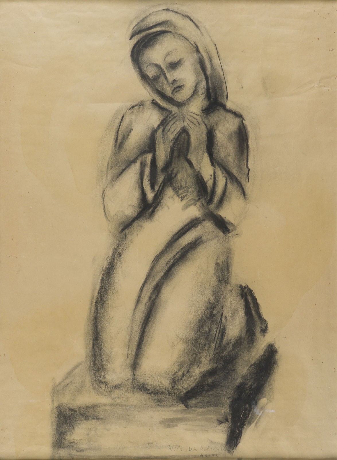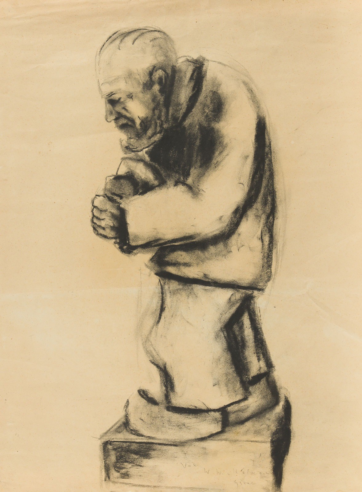 FRIEDRICH 'FRITZ' FRANZ VIEGENER 1888 Soest - 1976 Möhnesee-Delecke PAIR OF DRAWINGS FOR SCULPTURES Charcoal on brownish paper. F 55 x 41 cm, visible size 53,5 x 39 cm / sheet size 54 x 39,5 cm. Illegible inscr. at bottom centre. With crease marks, part. dam. part. stained. 1x framed behind glass (unopened).