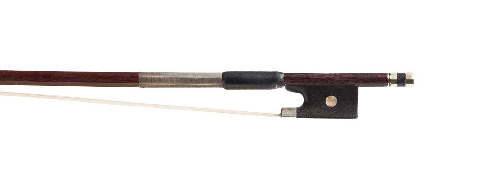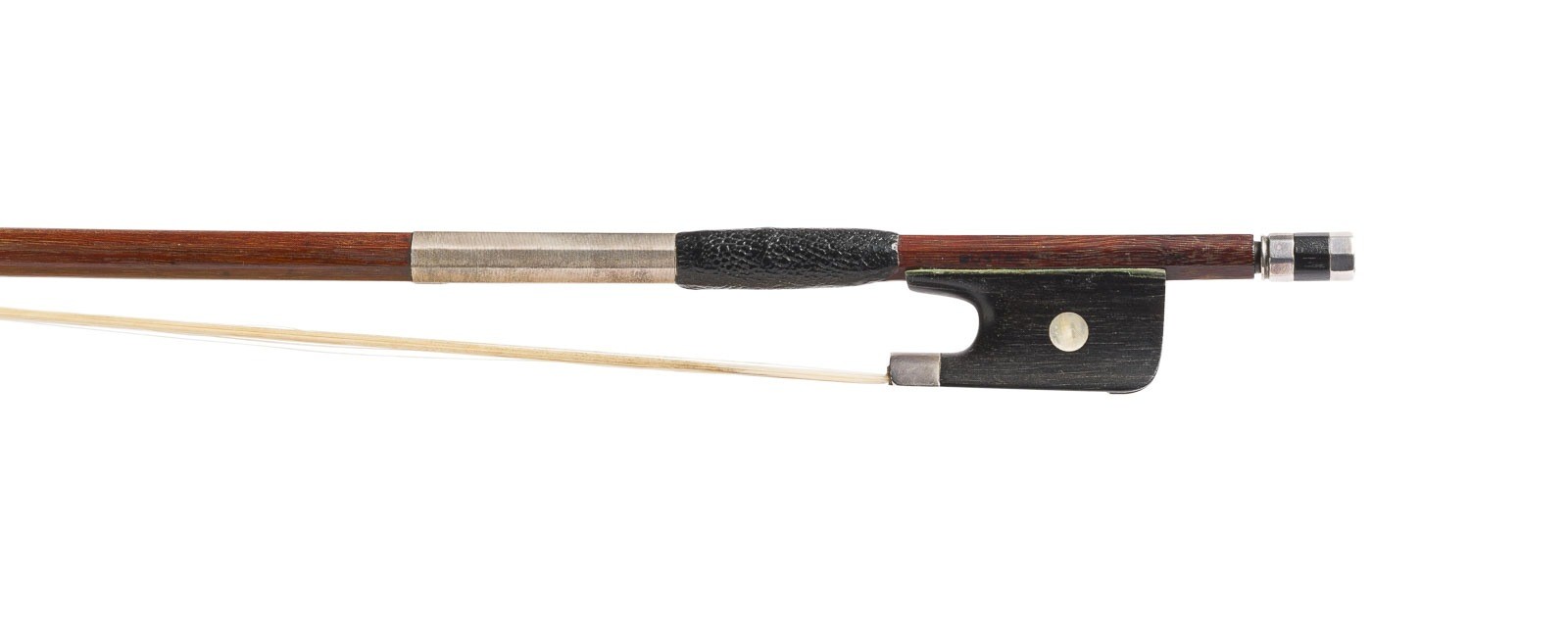 GROUP OF FOUR VIOLIN BOWS 'MEINEL', 'HAMMIG' AND 'PRAGER' German, early 20th century. Octagonal sticks, single and Parisian eyes, silver mounting, winding, thumb leather, ivory head plates. Lengths 74.2 / 74.5 / 74.1 / 74.5 cm, weights approx. 58 / 58 / 59 / 64 g. Violin bows marked "Fritz Meinel", two marked "Gustav Prager" and one marked "Hammig". Partially rubbed and minimally bumped. Provenance: Private collection, Rhineland. CITES marketing certificate is available. Please note that due to the current CITES regulations for ivory and tortoiseshell objects, unrestricted trade is only permitted within the European Community. An export license is required for shipment to third countries. Please inform yourself about the current import regulations for ivory and tortoiseshell in your country. It is currently not possible to export ivory to the USA, Canada or England. This item is not legal to sell in the UK.