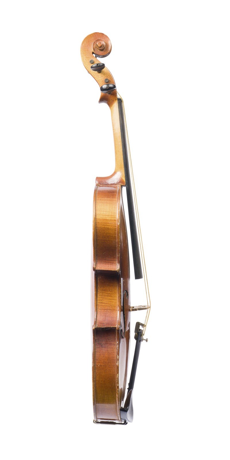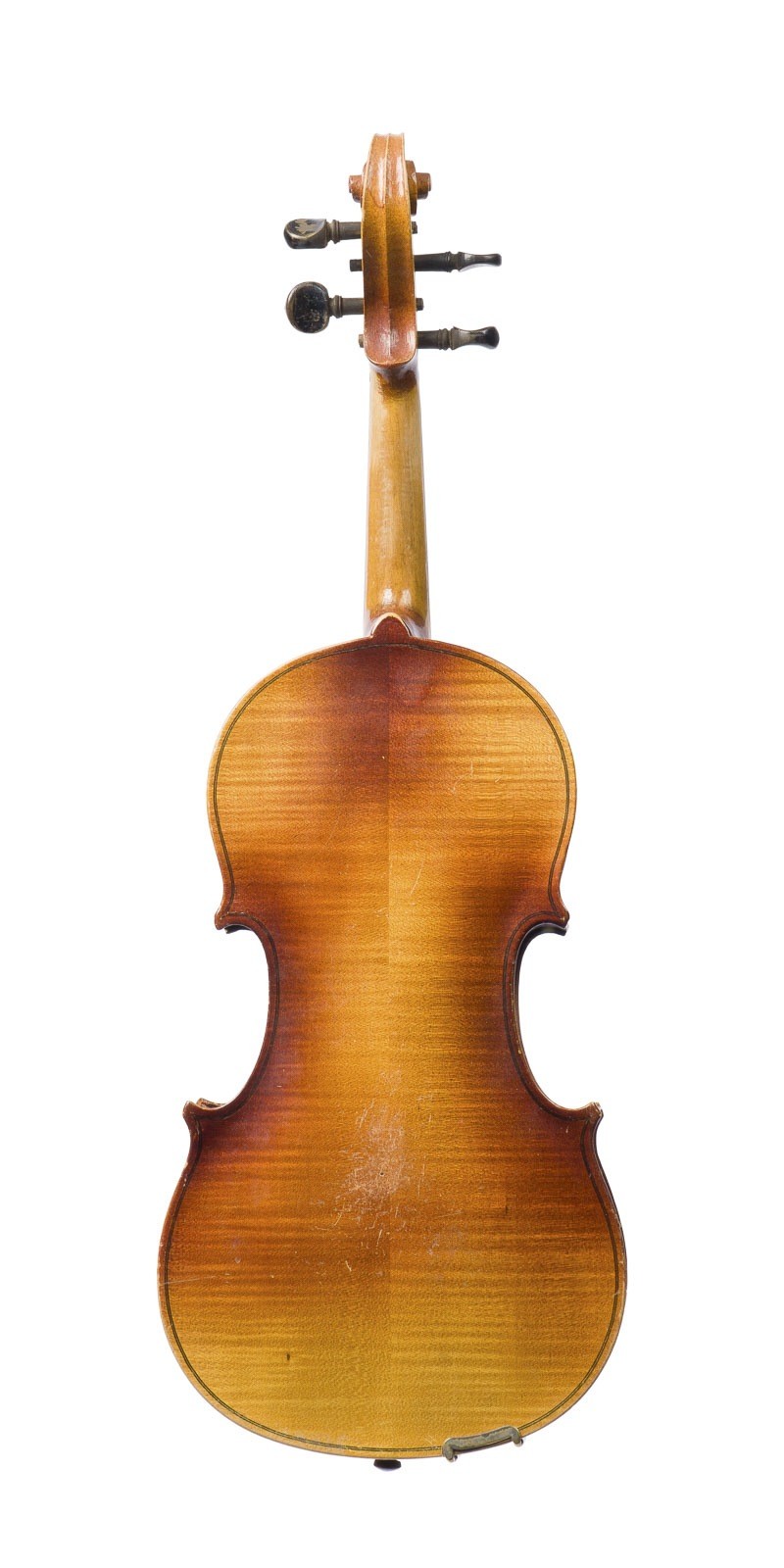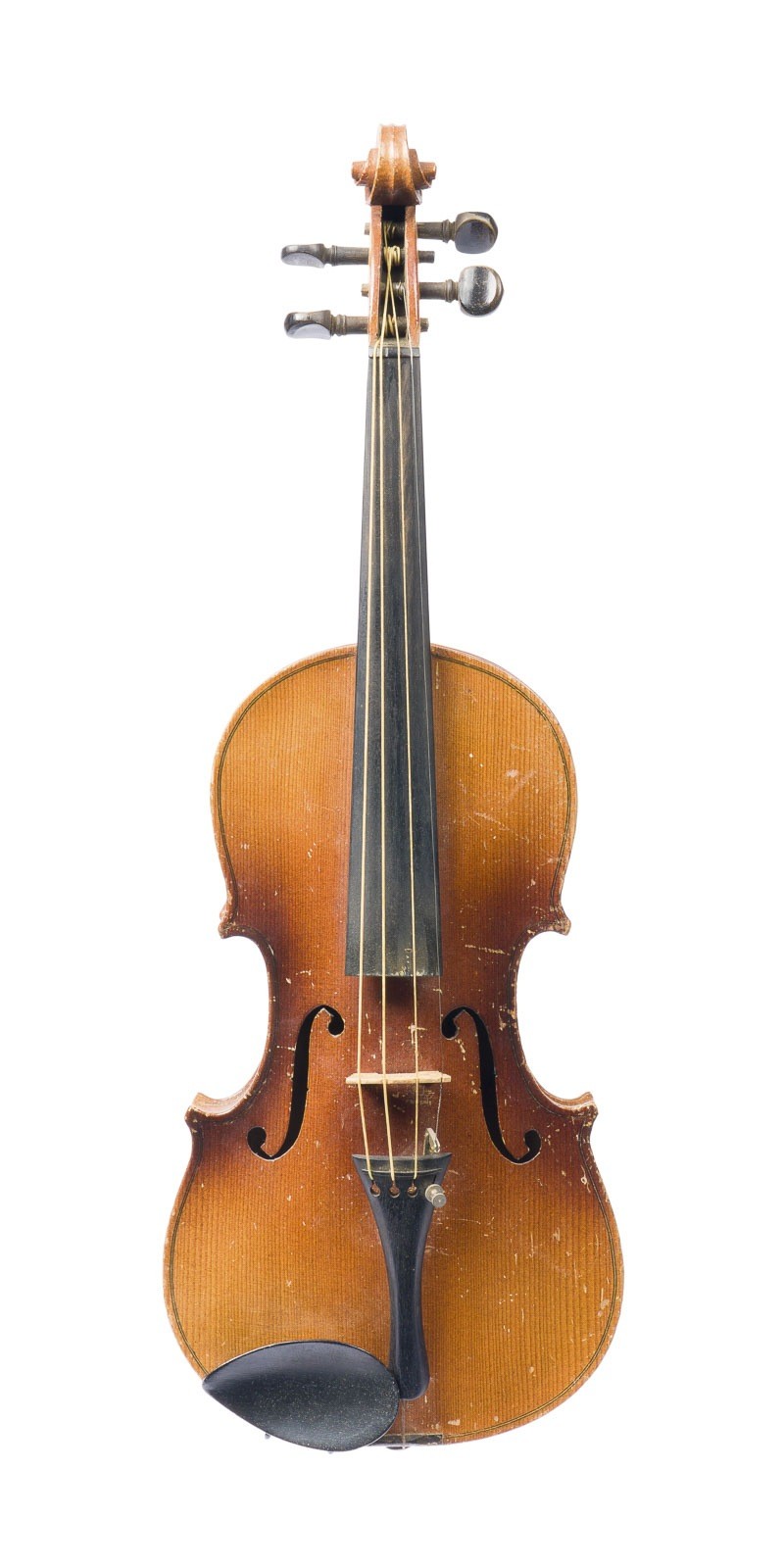 VIOLINE 20th century. Two-piece spruce top and maple back, brown-orange and transparent varnish, with wooden case. 4/4 violin, l. 59.4 cm, body l. 36.2 cm. Without violin label. Part. dam. and rub.