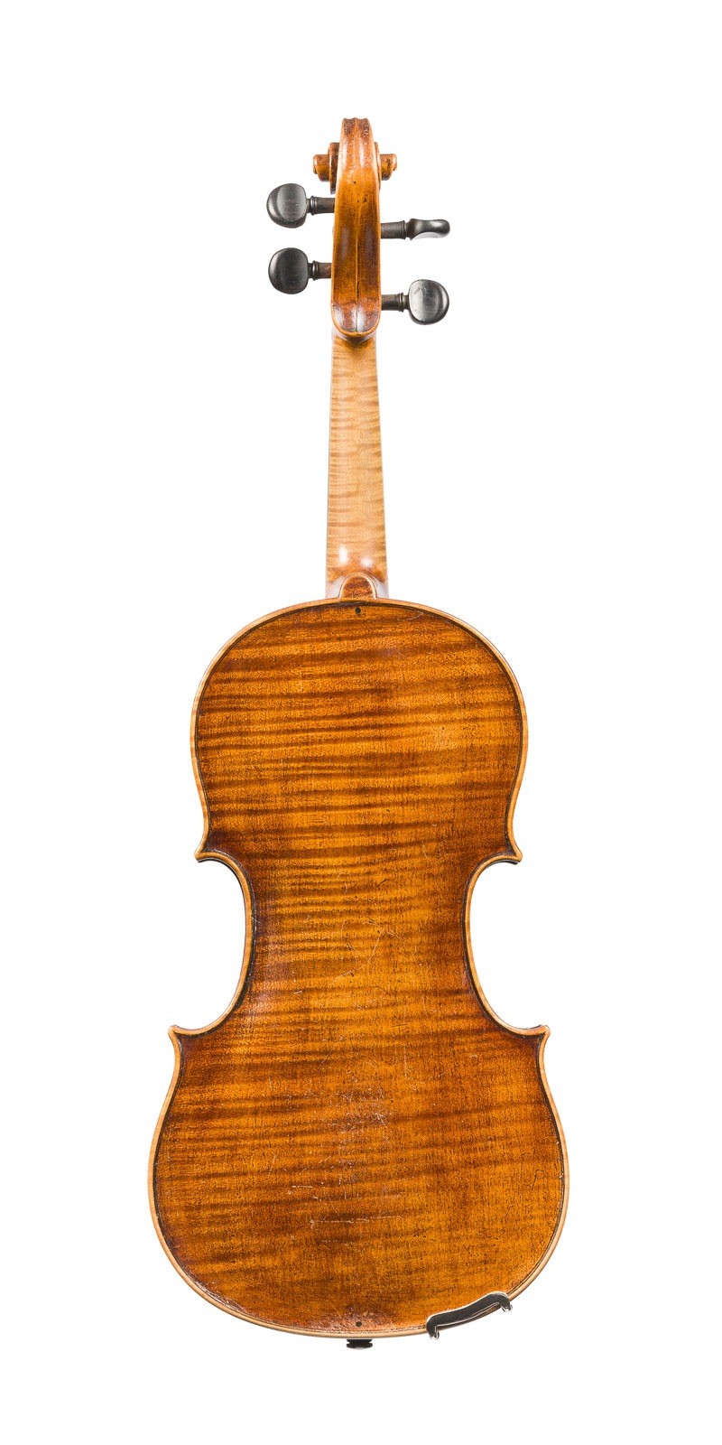 VIOLIN AFTER ANTONIO STRADIVARI AND VIOLIN BOW* German, early 20th century. One-piece spruce top and maple back, brown varnish, with case. 4/4 violin, length 58.7 cm, body length 35.5 cm. Violin label: "Antonius Stradivarius Cremonensis Faciebat Anno 1725". Violin bow, German, early 20th century, round stick, simple frog, thumb leather, ivory head plate, L. 73.5 cm, unmarked, min. bumped. Violin min. bumped. CITES marketing certificate is available. Please note that due to the current CITES regulations for ivory and tortoiseshell objects, unrestricted trade is only permitted within the European Community. An export license is required for shipment to third countries. Please inform yourself about the current import regulations for ivory and tortoiseshell in your country. It is currently not possible to export ivory to the USA, Canada or England. This item is not legal to sell in the UK.