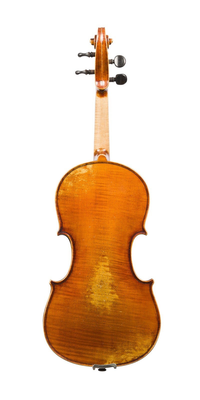 VIOLIN AFTER 'NICOLA AMATI' AND TWO VIOLIN BOWS German, circa 1900 One-piece spruce top and maple back, light brown varnish, with case. 4/4 violin, L. 59, body L. 36 cm. Violin label: 'Nicolaus Amatus fecit in Cremona 1680'. Two violin bows, German, early 20th century, round stick, winding, unmarked, bone head plate, partly preserved, 1x without head plate. Violin min. preserved, top crack rest.