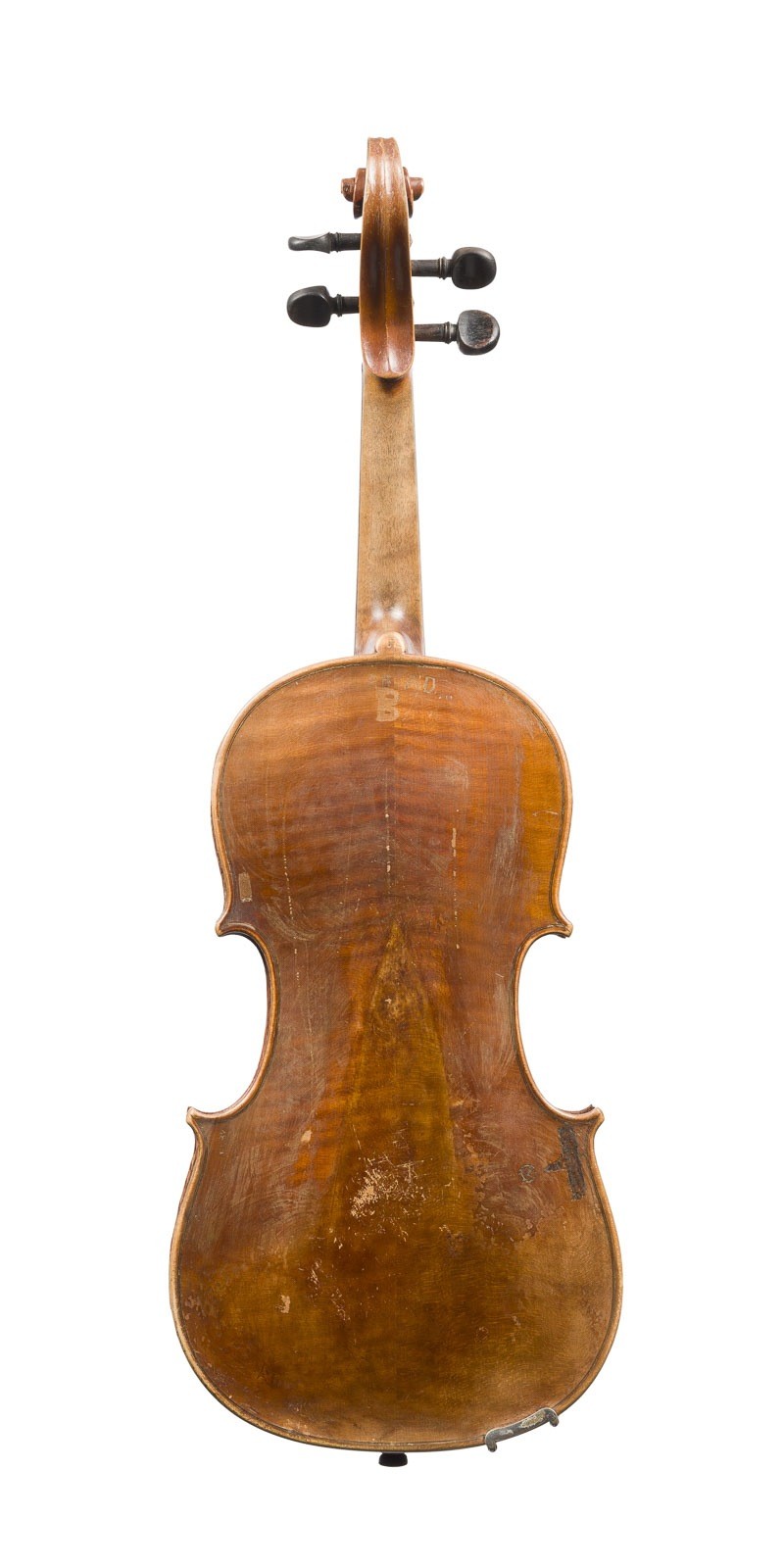 VIOLIN 'P.D. A.D.' MODEL STAINER Early 20th century Two-piece spruce top and maple back, brown varnish, with case. 4/4 violin, L. 59.5 cm, body length 36 cm. Marked on the back 'P.B.', 'A.D.', 'B', and 'Stainer'. Partially dam. and in bumped.