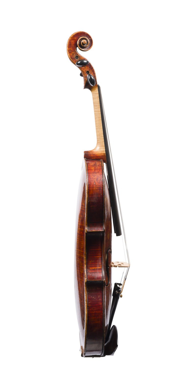 VIOLIN, SALZBURG SCHOOL Salzburg, 18th century Two-piece spruce top and maple back, dark brown varnish. Full-size (4/4) violin, length 58 cm, body length 35.6 cm. Unmarked. Violin from the Salzburg school of the 18th century, made in the tradition of Alpine-Austrian violin making. Characteristic features include balanced proportions, an arched body and solid craftsmanship. Instruments of this regional school combine influences of South German and Italian violin making of the 18th century. Partially bumped, rest. Expertise: Certificate by Hieronymus Köstler, Stuttgart, 2016. Provenance:Estate from a German violin-making workshop.