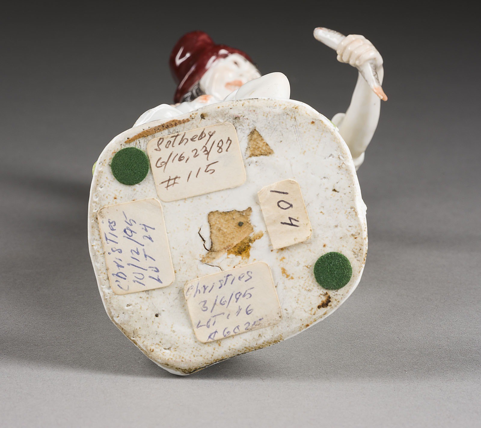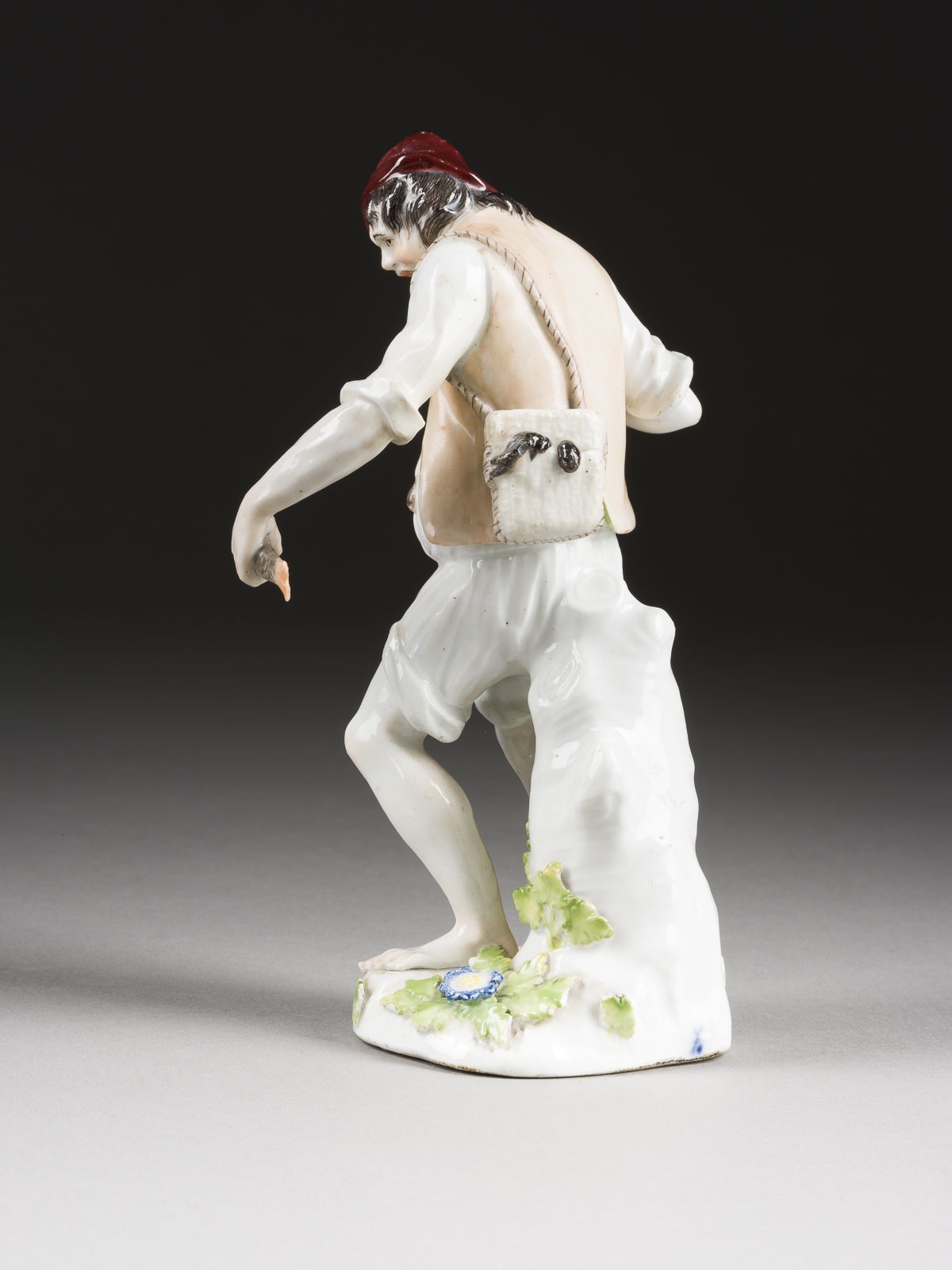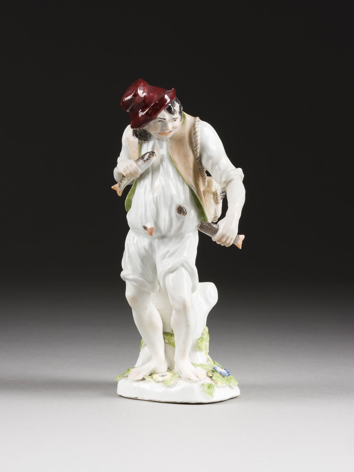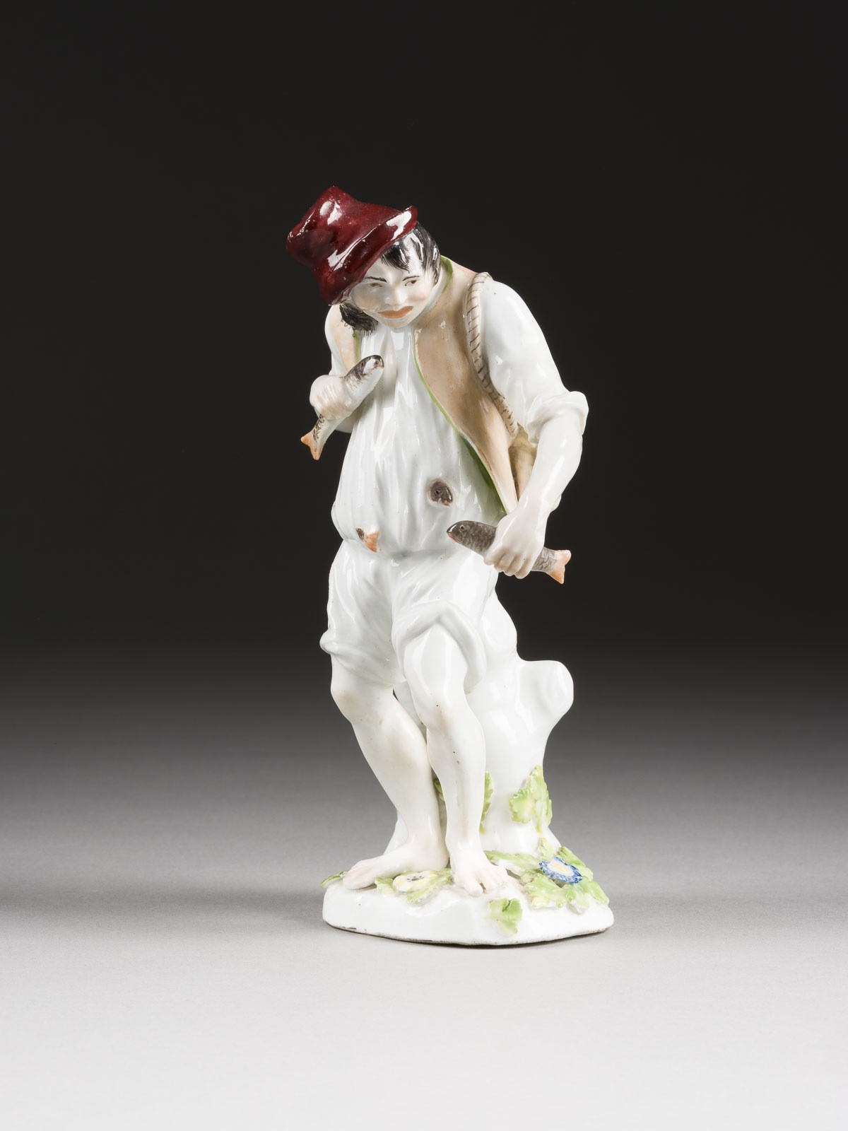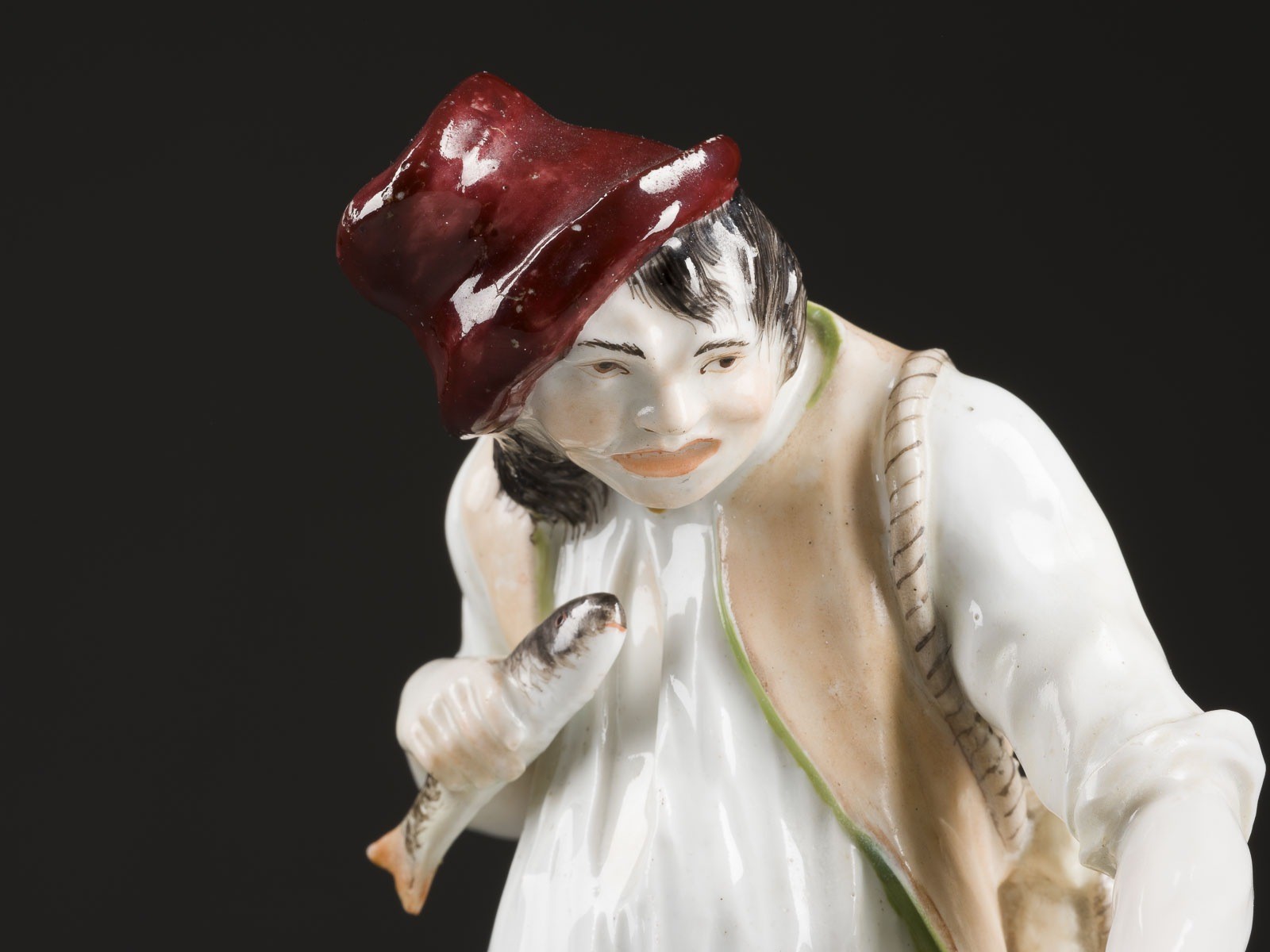 Als prägendster Modelleur der frühen Meissener Manufaktur führte Johann Joachim Kaendler die Porzellanplastik in den 1730er und 1740er Jahren zu einer bis dahin unerreichten künstlerischen Blüte. Neben höfischen Repräsentationsfiguren und Tierplastiken entwickelte er ein neuartiges Figurenrepertoire aus dem bäuerlich-ländlichen Milieu - inspiriert von der niederländischen und flämischen Genremalerei des 17. Jahrhunderts, insbesondere von David Teniers d. J. Die folgenden beiden Modelle stehen exemplarisch für diese Hinwendung zum lebensnahen, bewegten Genre.